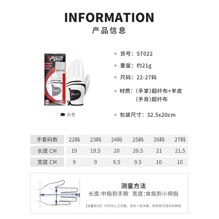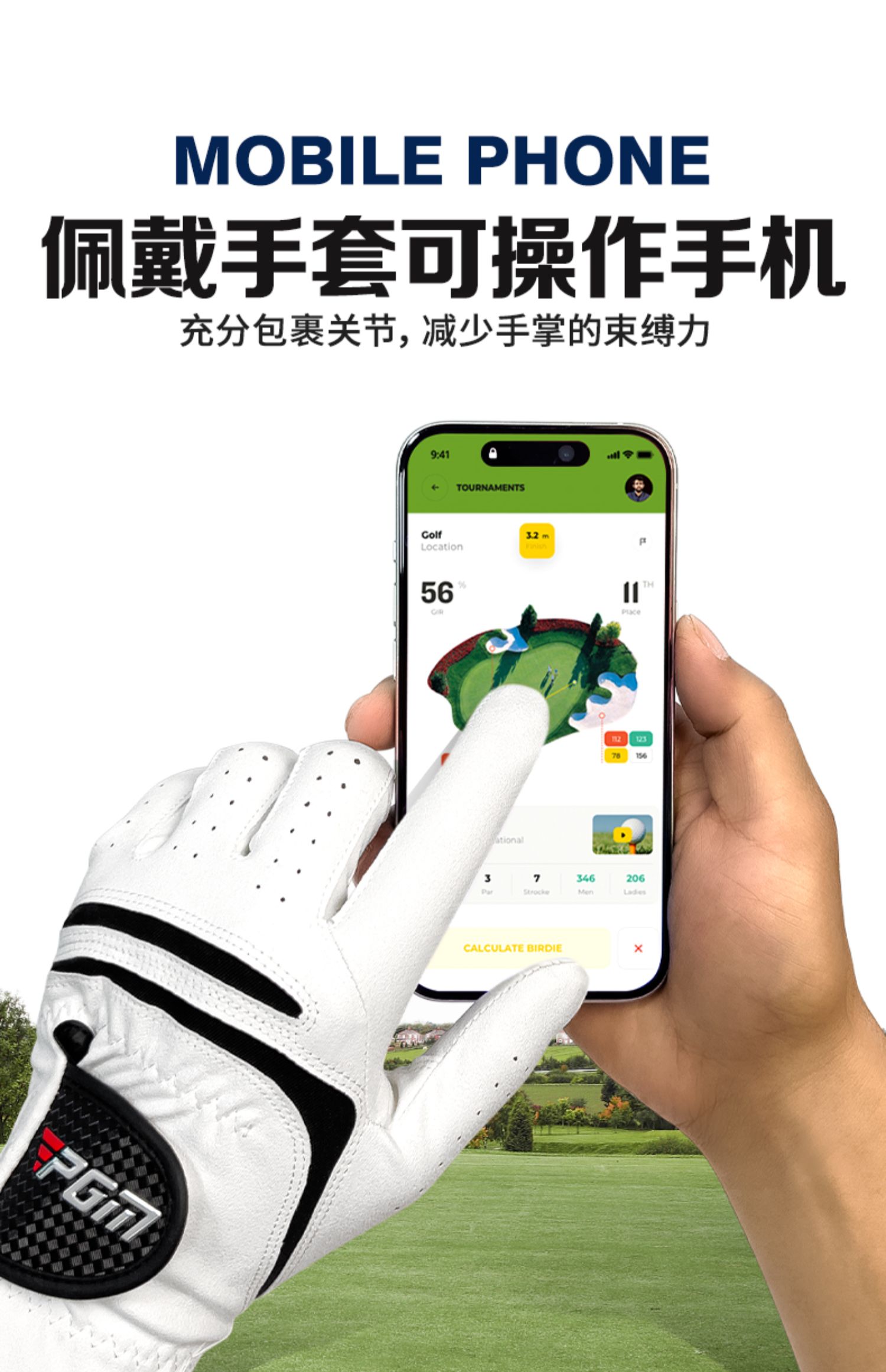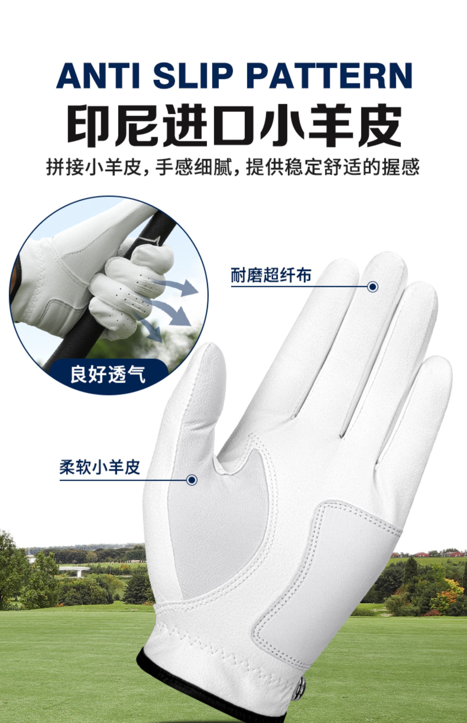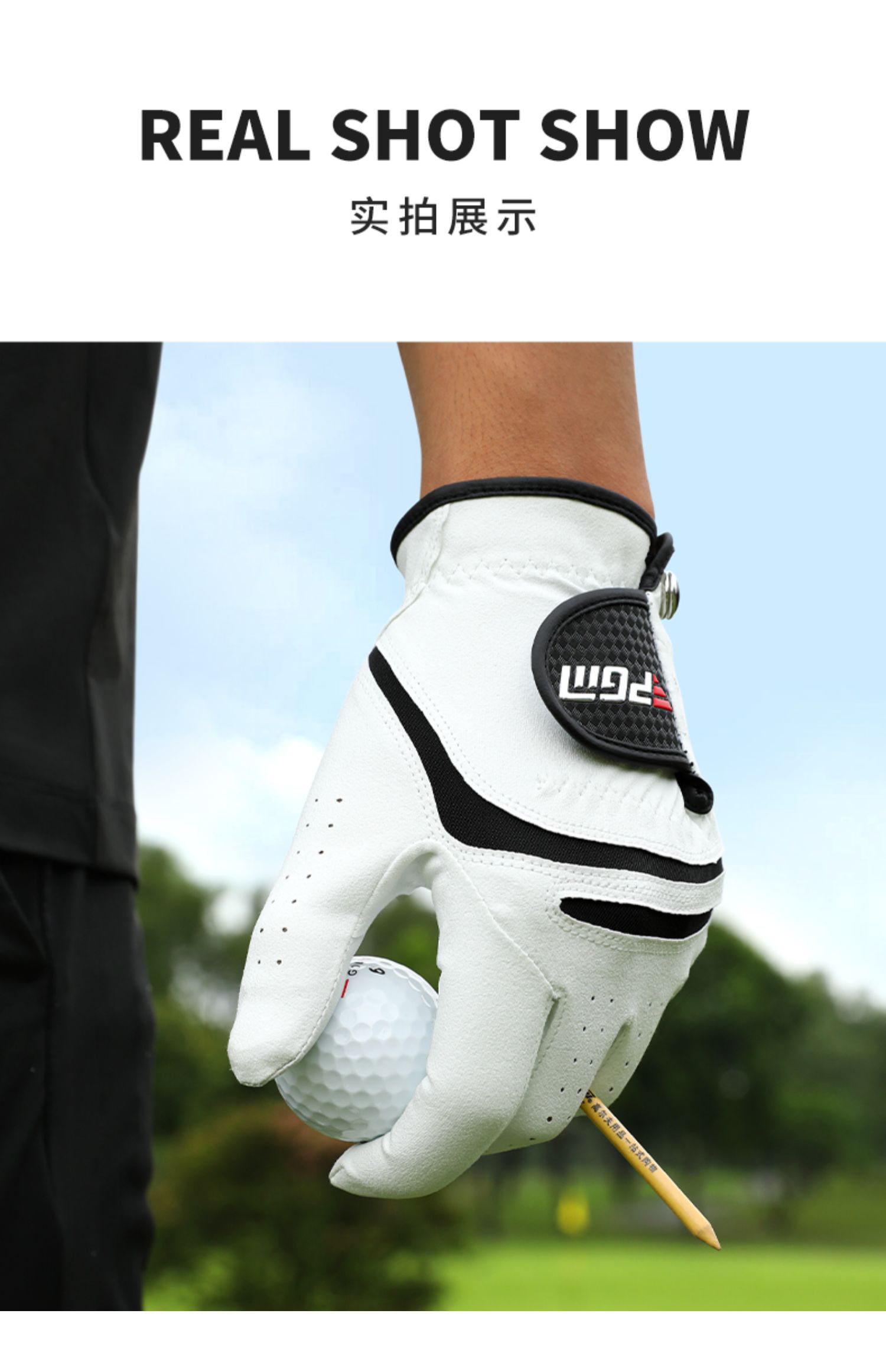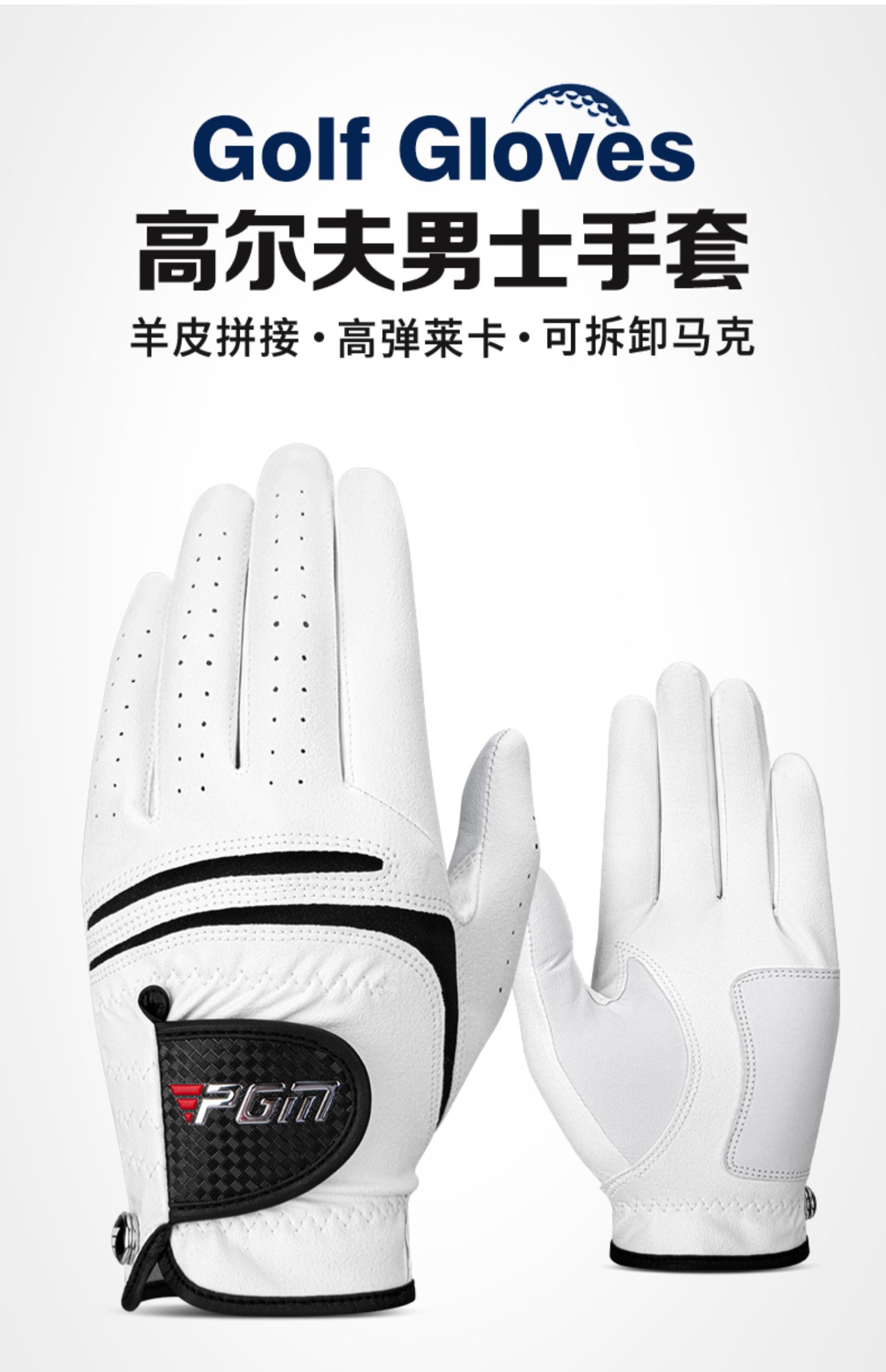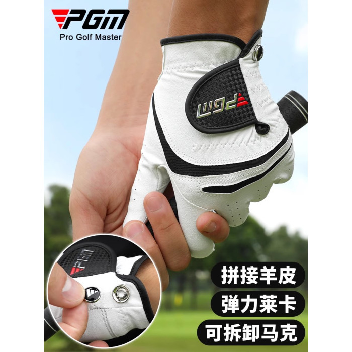 PGM 高爾夫手套男士自帶馬克羊皮拼接超纖布透氣單衹左右雙手用品