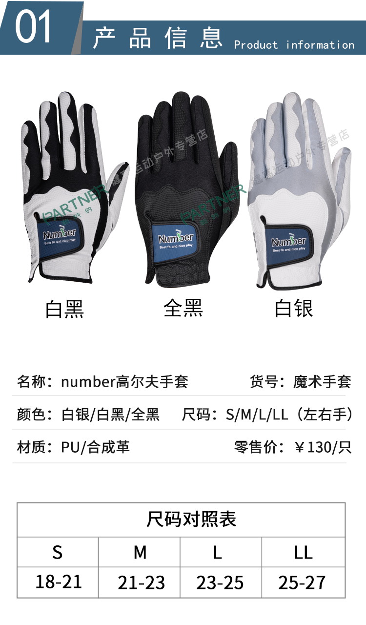 Number高爾夫手套男士女士可配左右手伸縮魔術手套PU