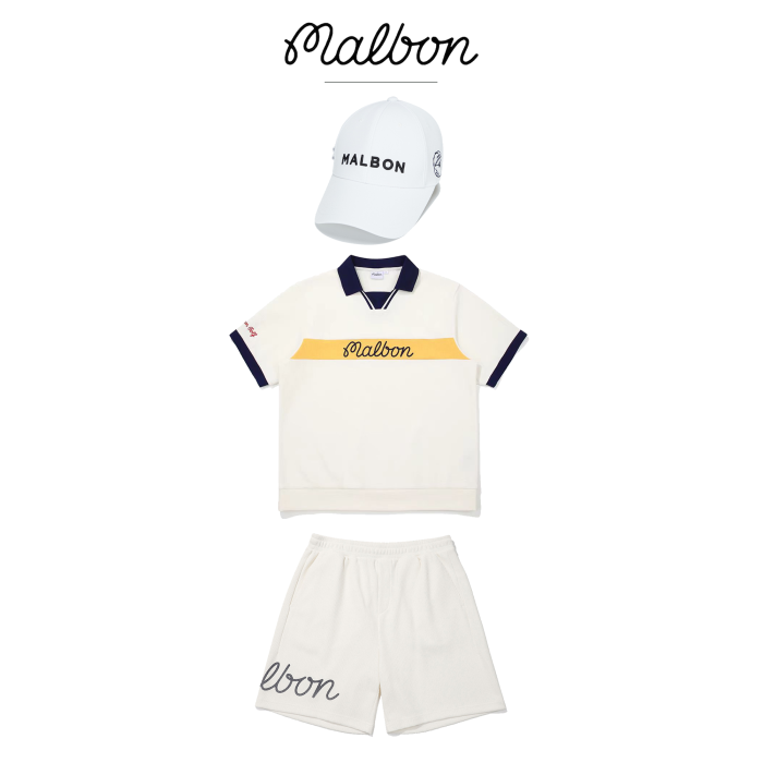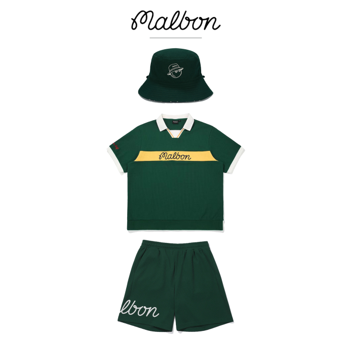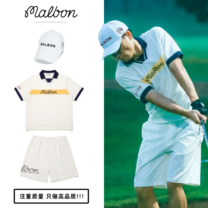 2025新款malbon韓國高爾夫男款套裝運動短袖透氣速乾短褲遮陽球帽