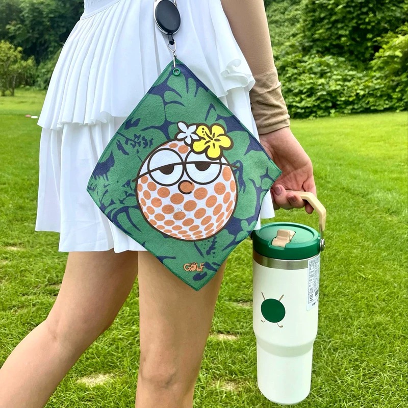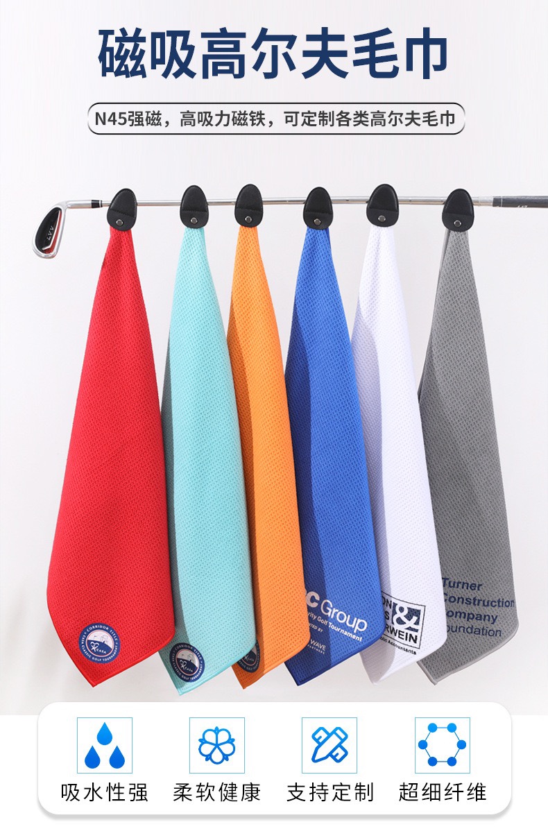 高爾夫毛巾擦球桿布擦球巾華夫格超細纖維吸汗運動毛巾帶掛鉤鎖扣