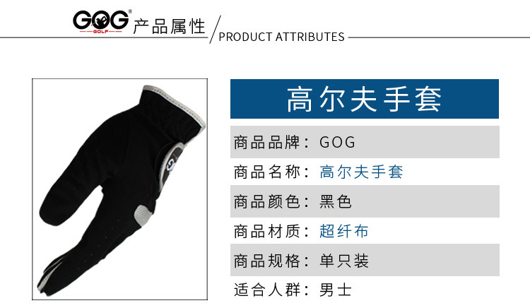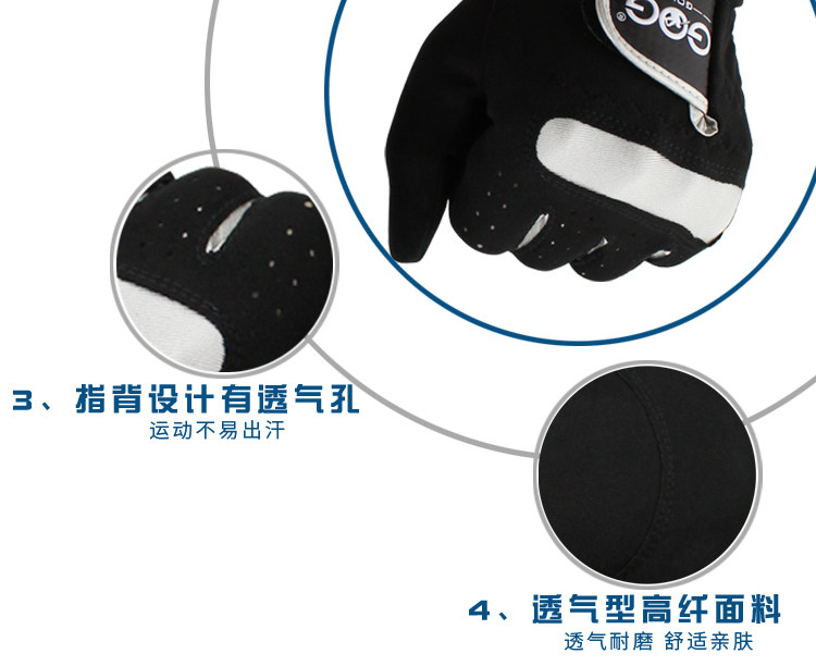 優質GOG高爾夫手套 黑色麂皮布左右手男女雙手高彈力透氣舒適防滑
