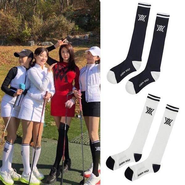 韓國高級高爾夫球襪女同款標志拼色長筒襪運動吸汗透氣百搭長襪