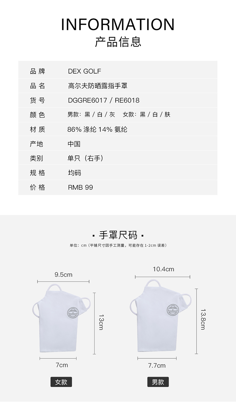 DEXGOLF韓國高爾夫手套夏季露指透氣冰絲防曬薄款右手單衹半指套