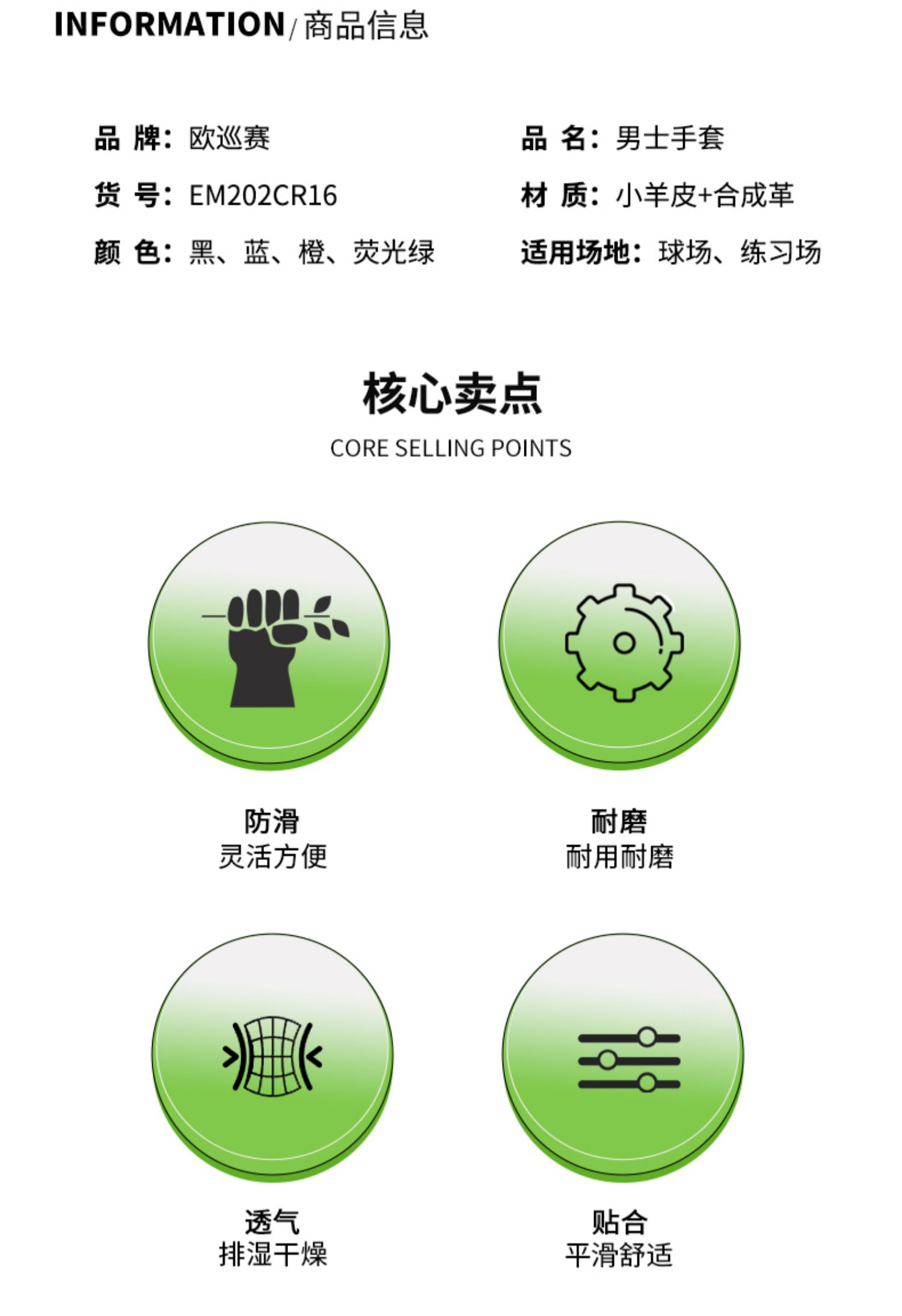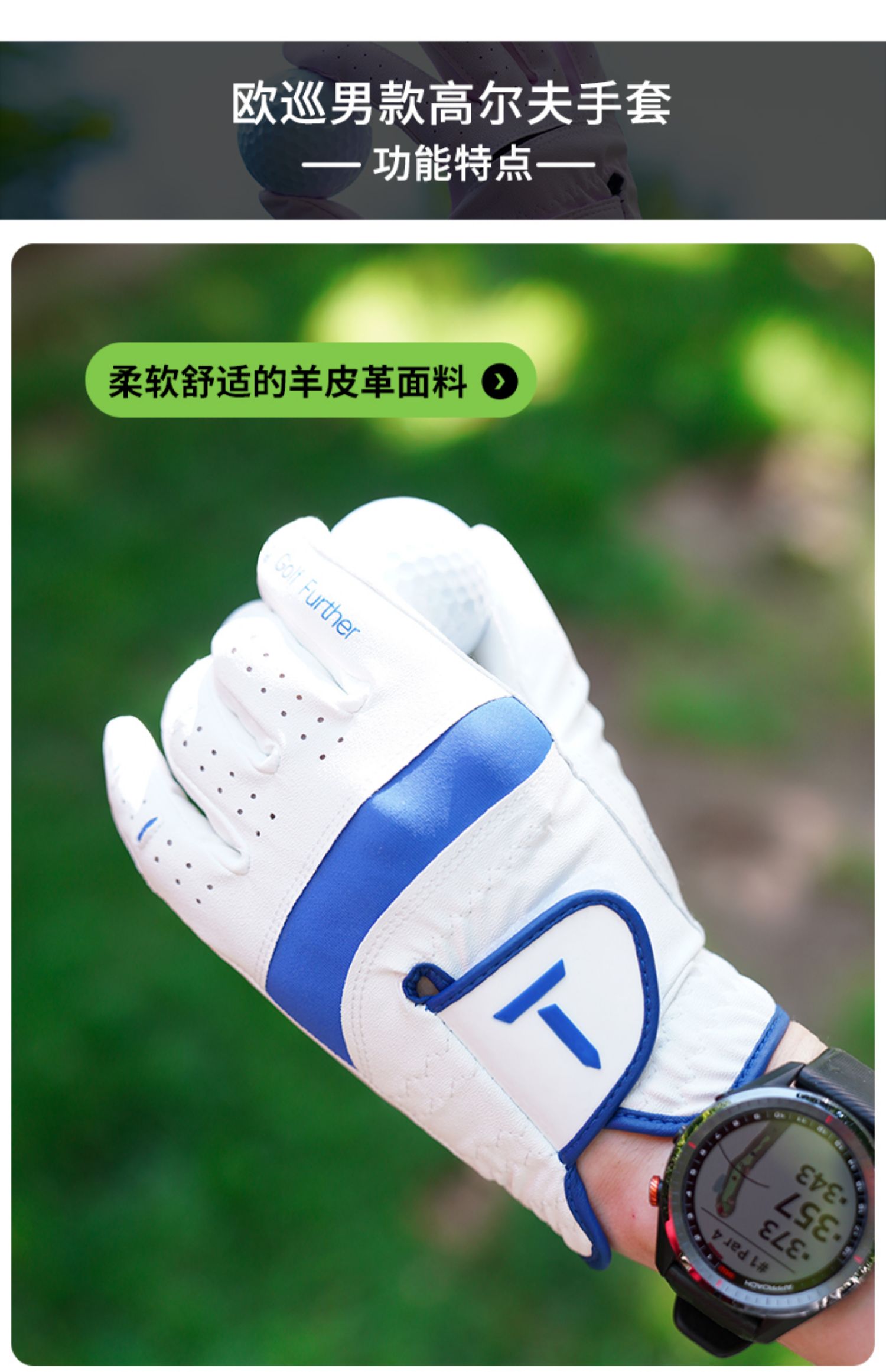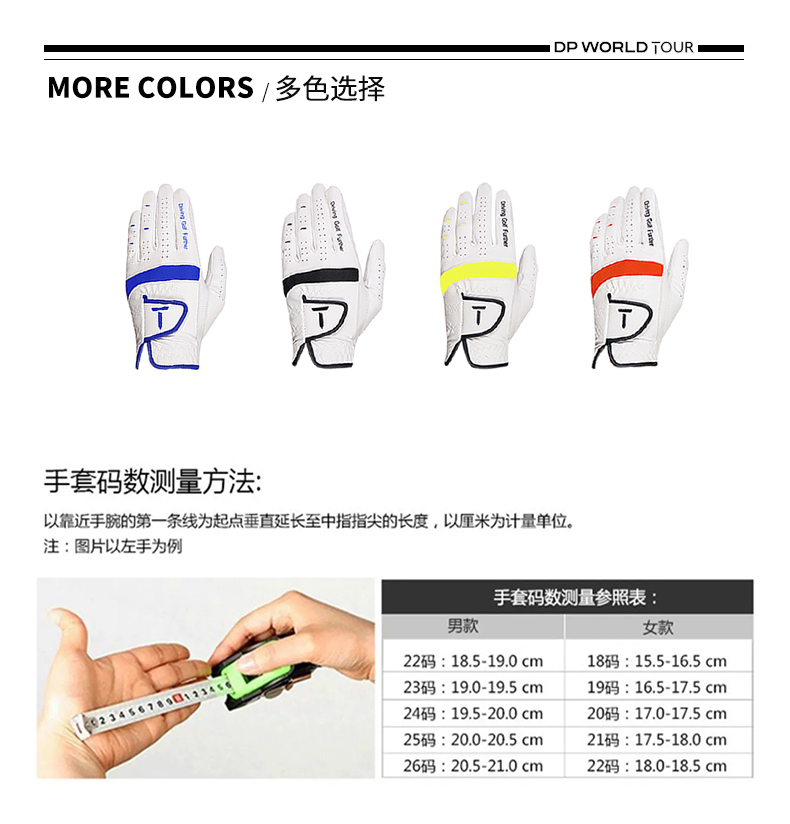 T/歐巡賽高爾夫手套男小羊皮高爾夫手套單衹全天候手套 EM202CR16