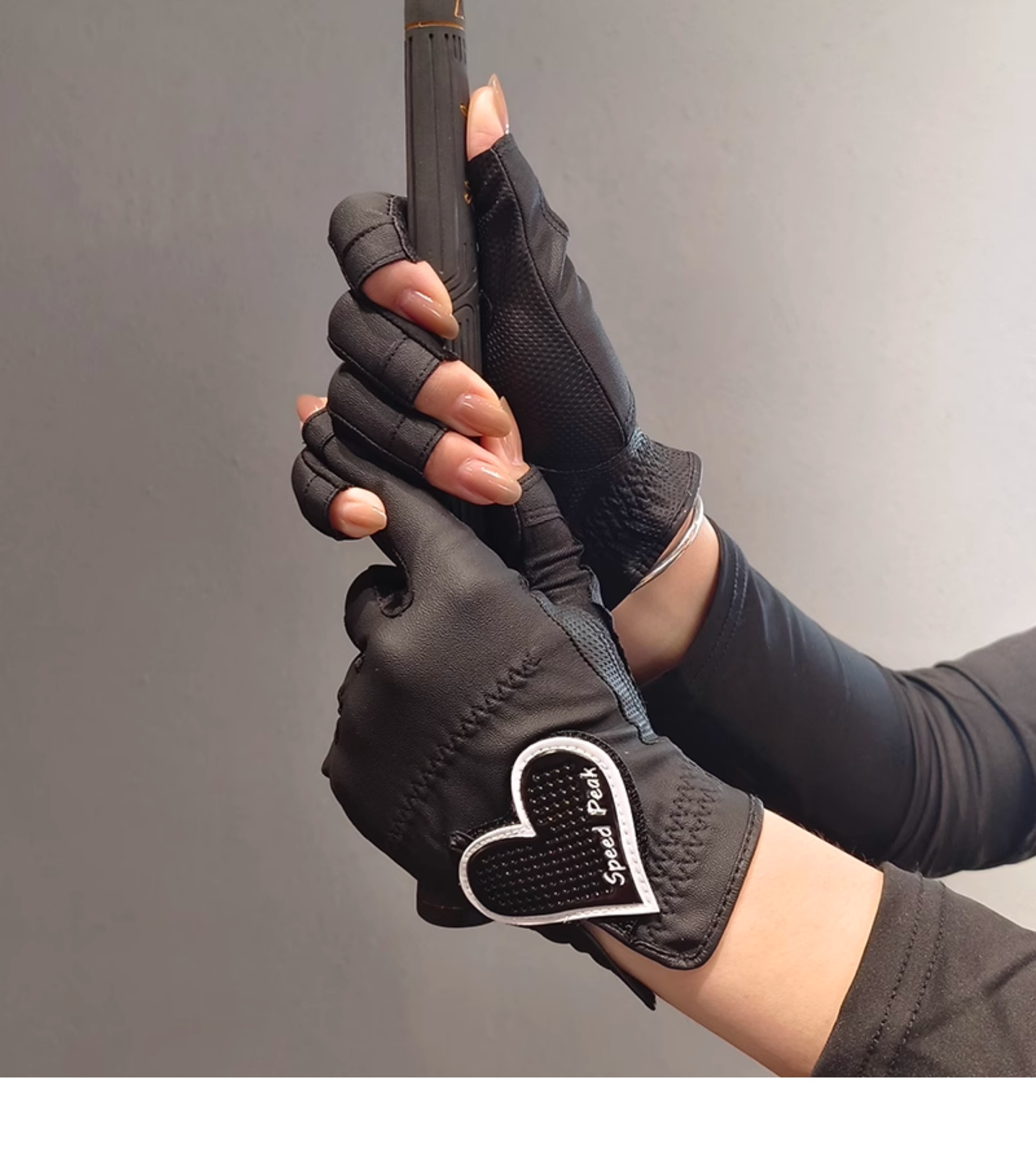 高爾夫女士手套防曬雙手夏天薄款透氣左手半指右手觸控螢幕式露指輕薄