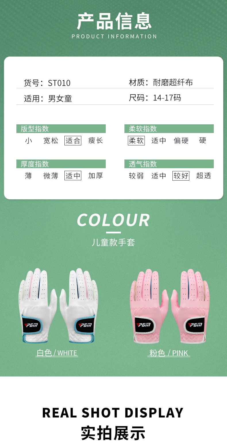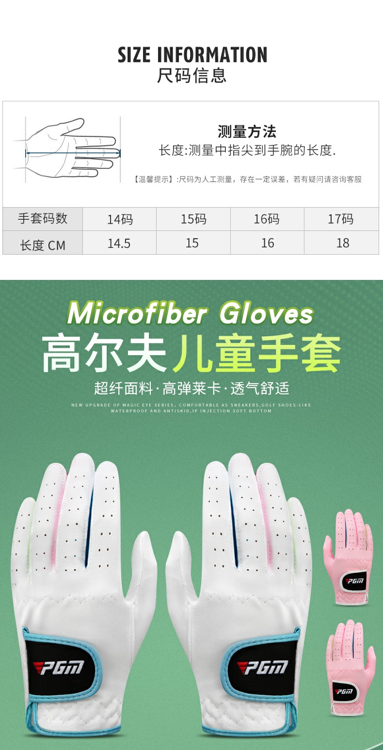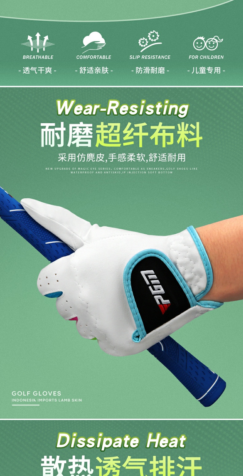 PGM高爾夫球手套兒童透氣男童女童手套青少年雙手耐磨超纖布手套