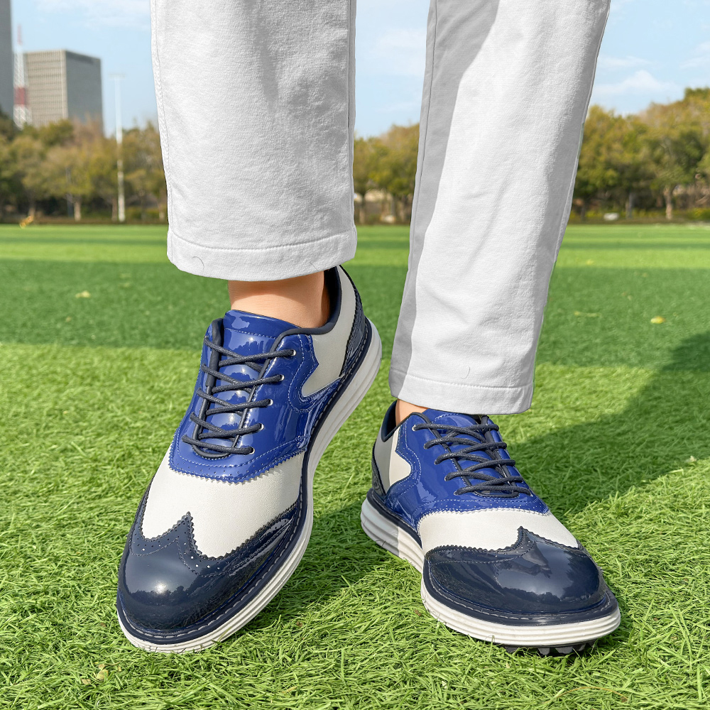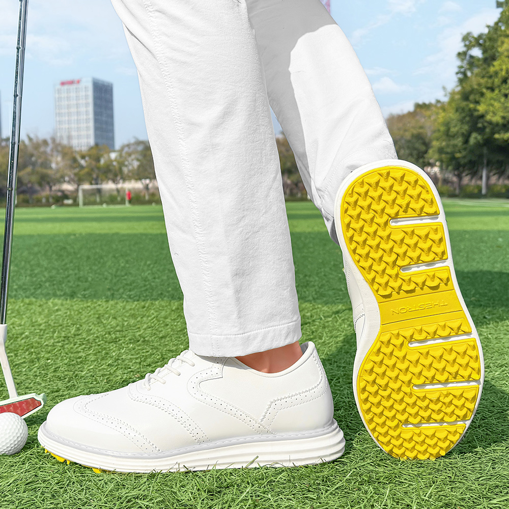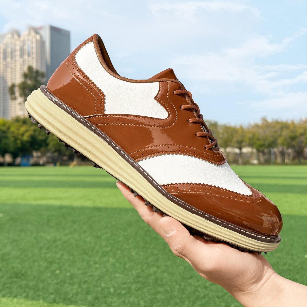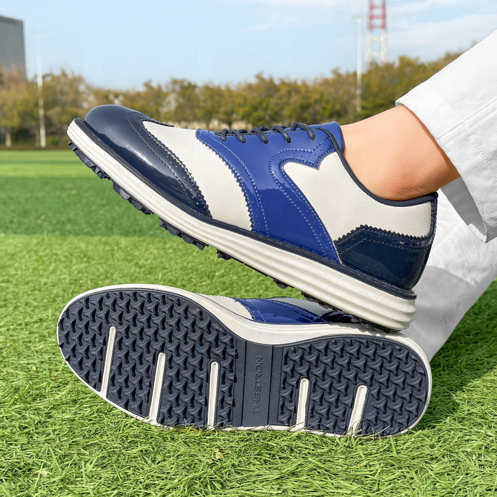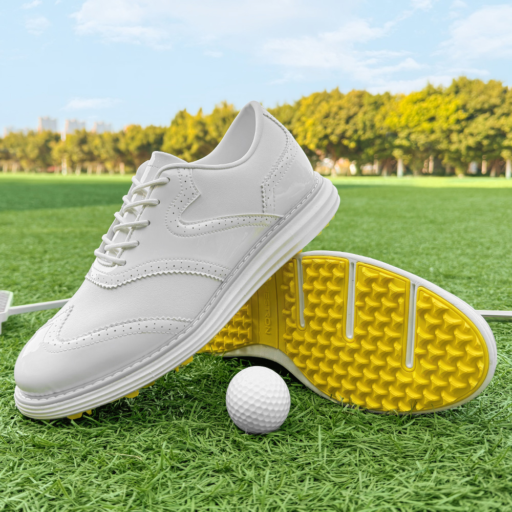 新款真皮男士高爾夫球鞋輕便運動鞋耐磨系帶透氣防滑男鞋