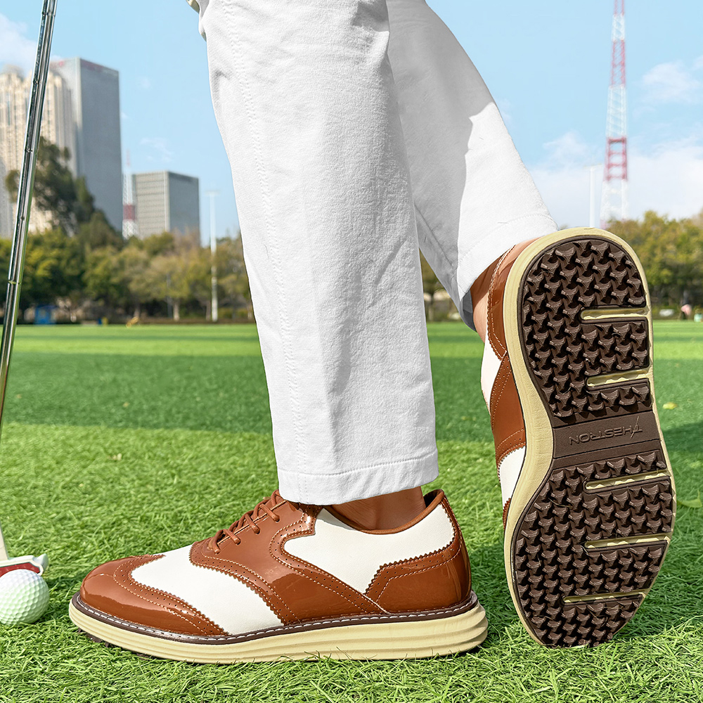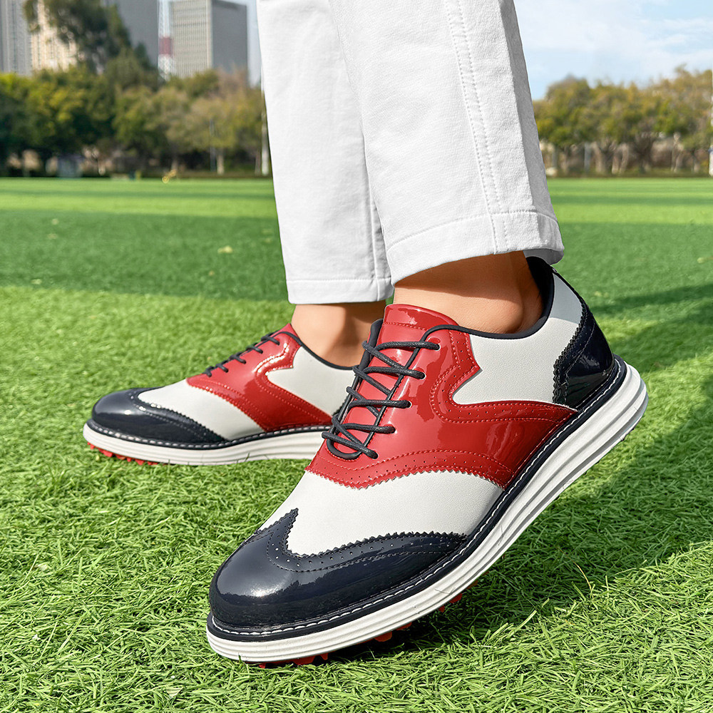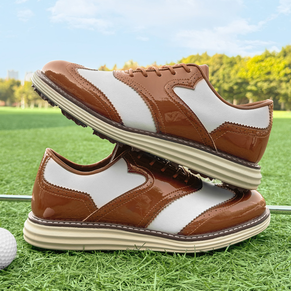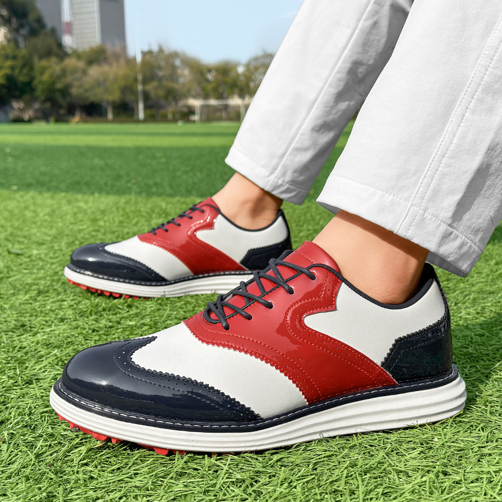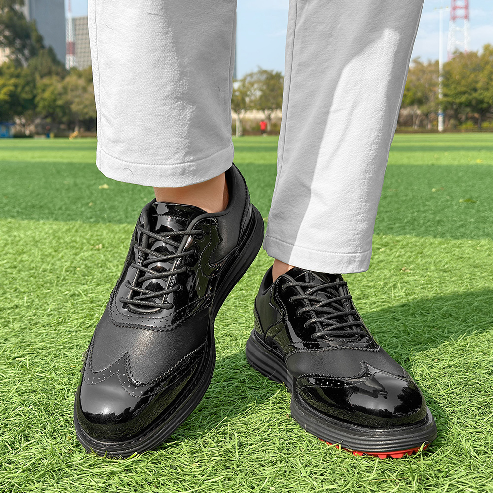 新款真皮男士高爾夫球鞋輕便運動鞋耐磨系帶透氣防滑男鞋