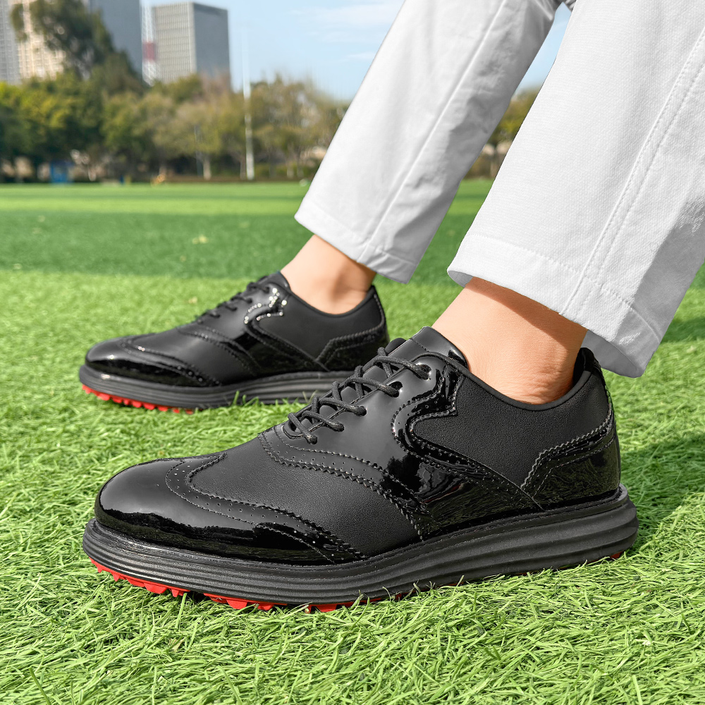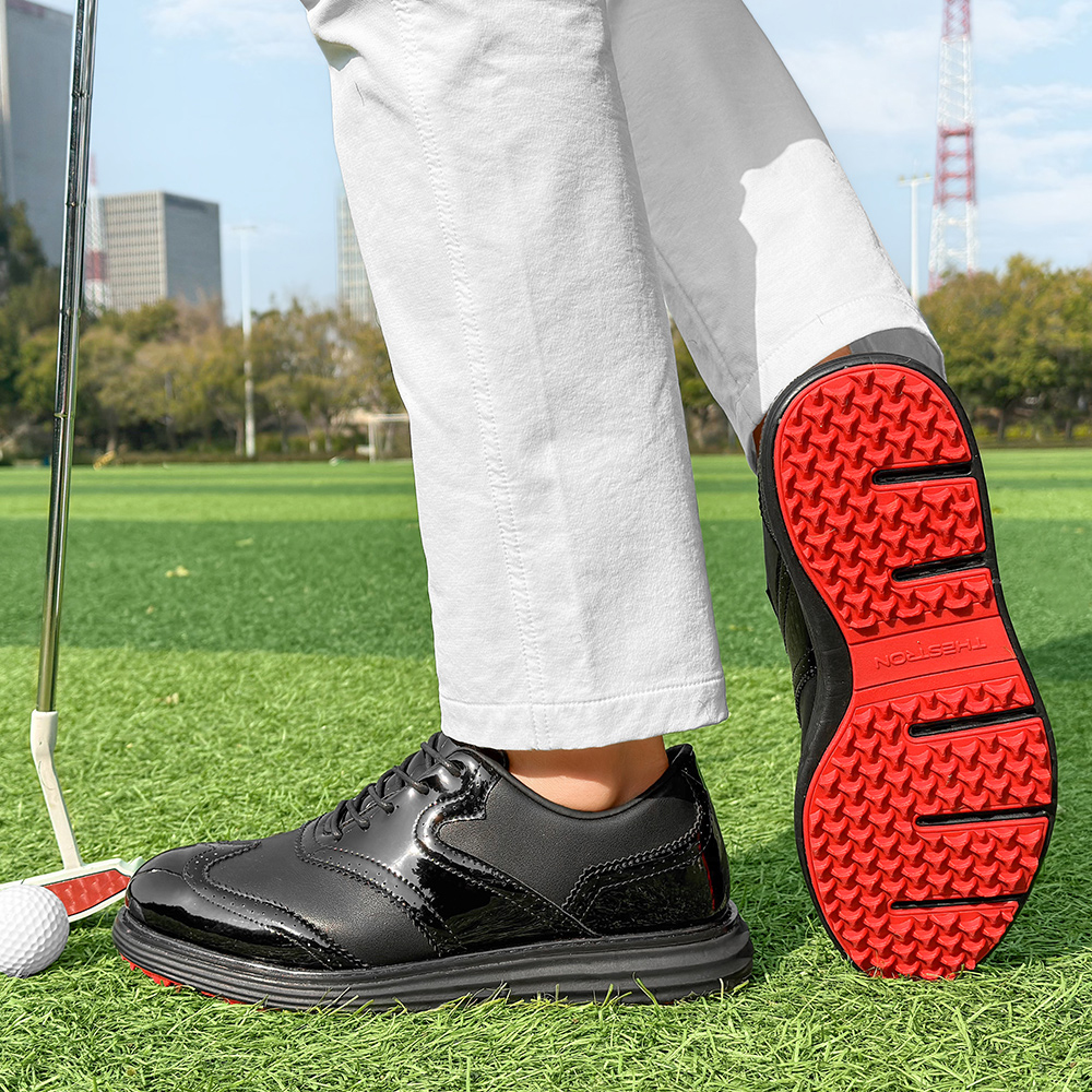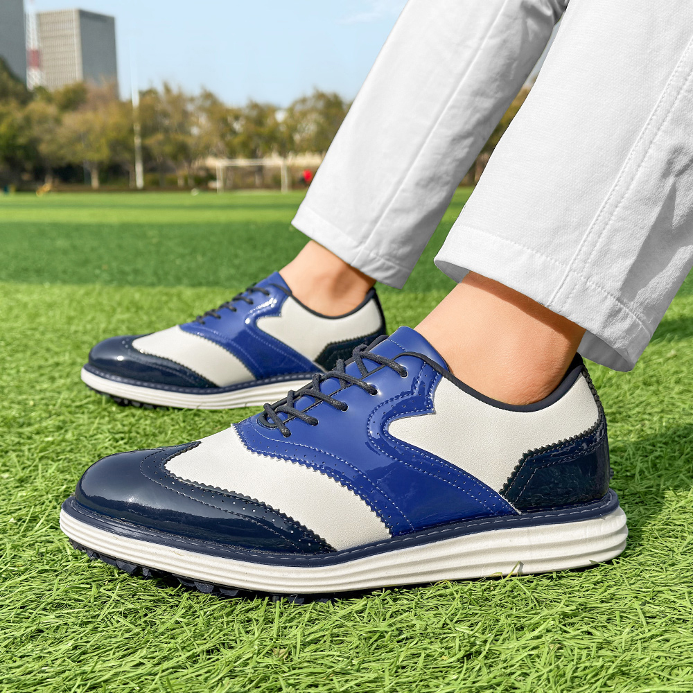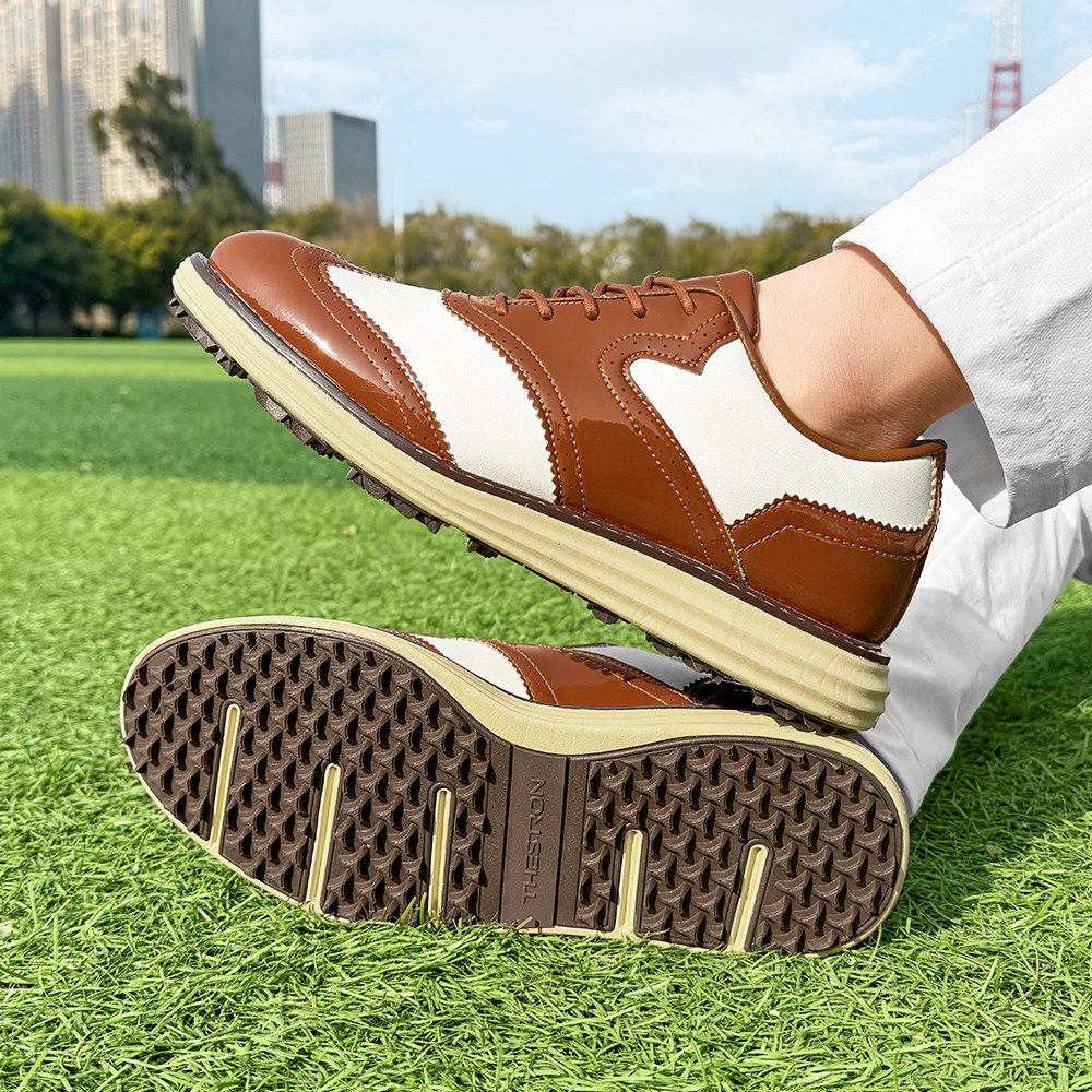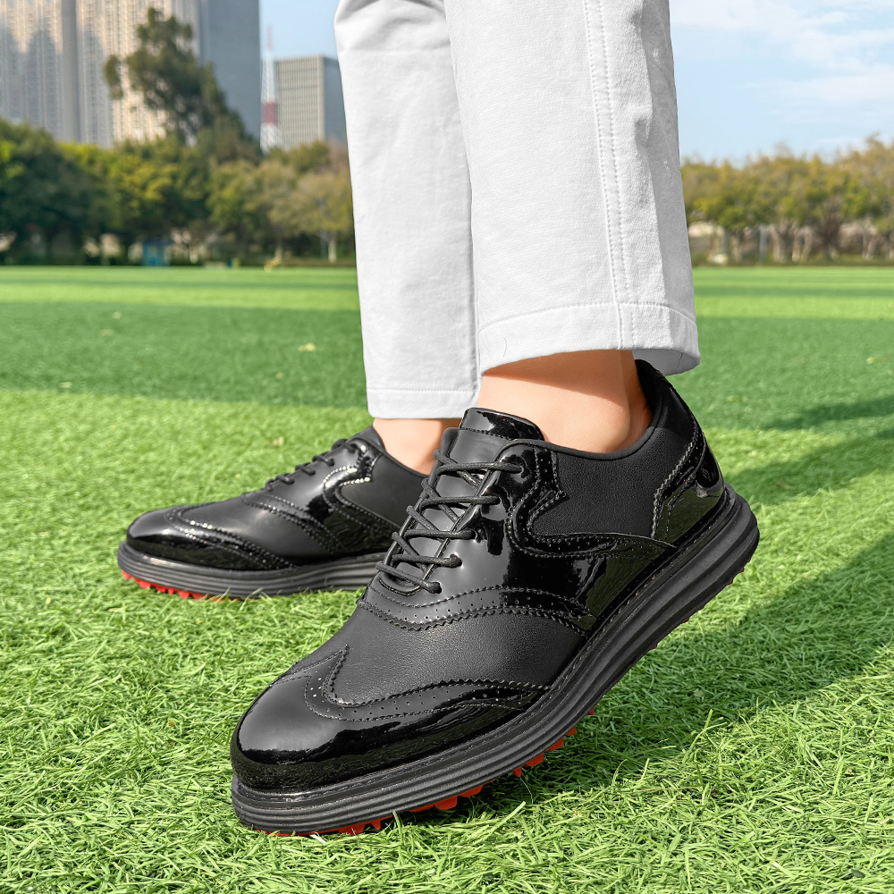 新款真皮男士高爾夫球鞋輕便運動鞋耐磨系帶透氣防滑男鞋