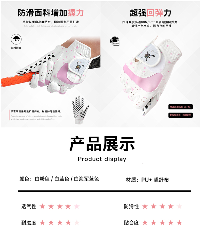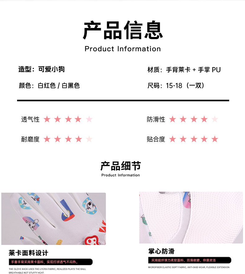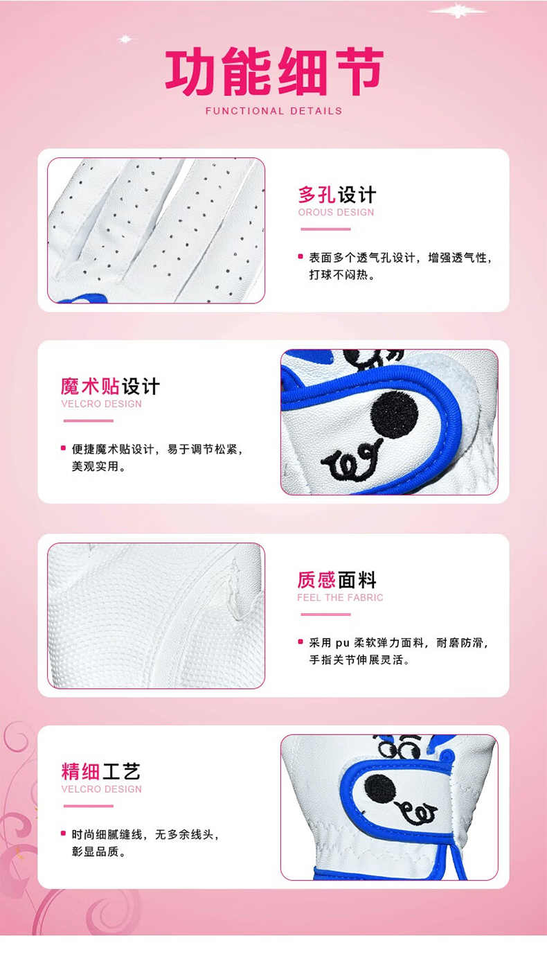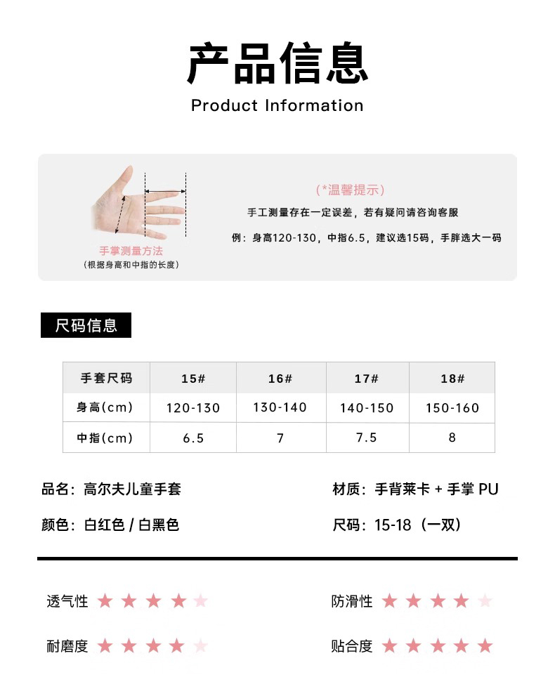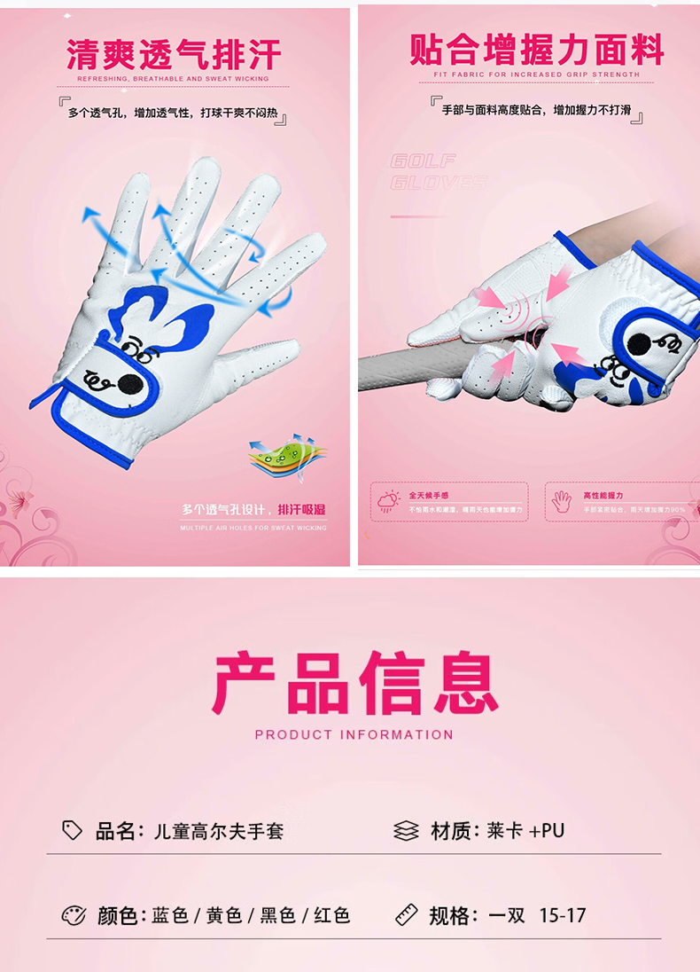 兒童高爾夫手套男童女童春秋小羊皮柔軟舒適防滑耐磨golf手套一雙