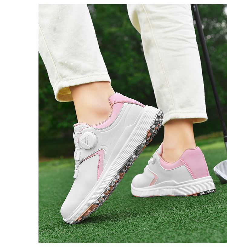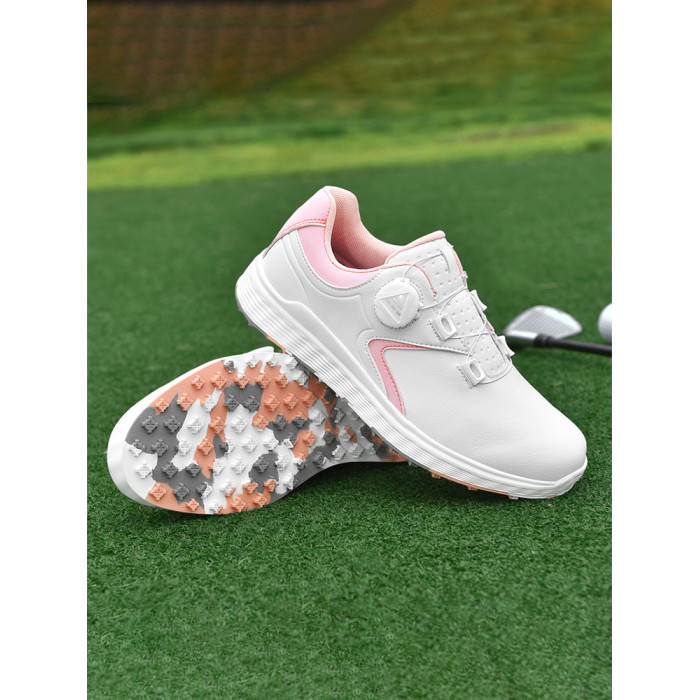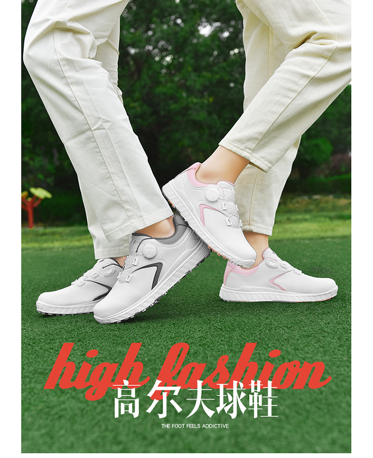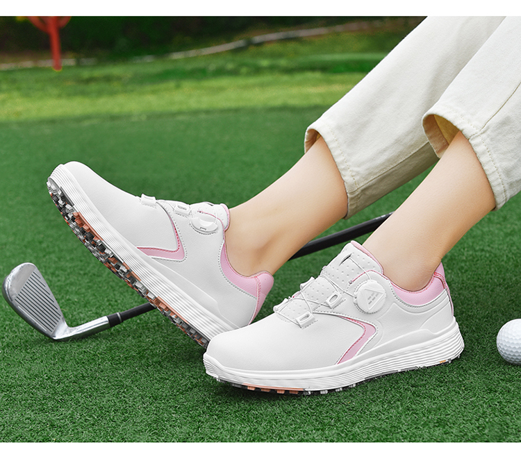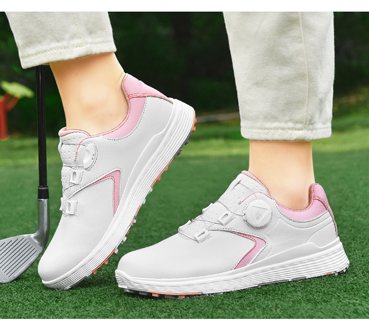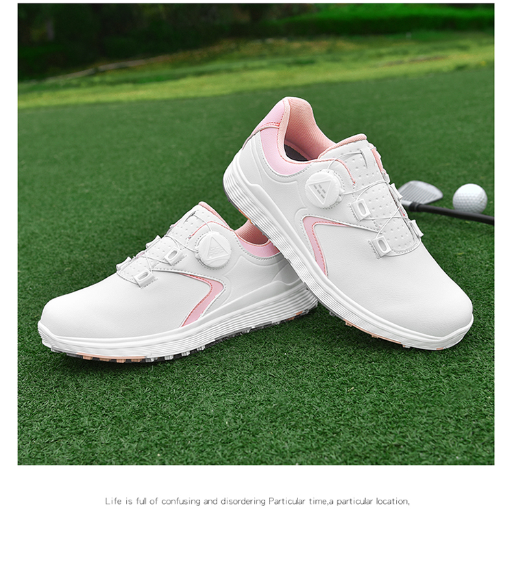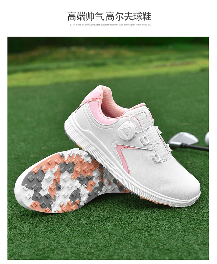 高爾夫球鞋女士舒適防水自動旋鈕伸縮鞋帶防滑固定釘戶外運動鞋