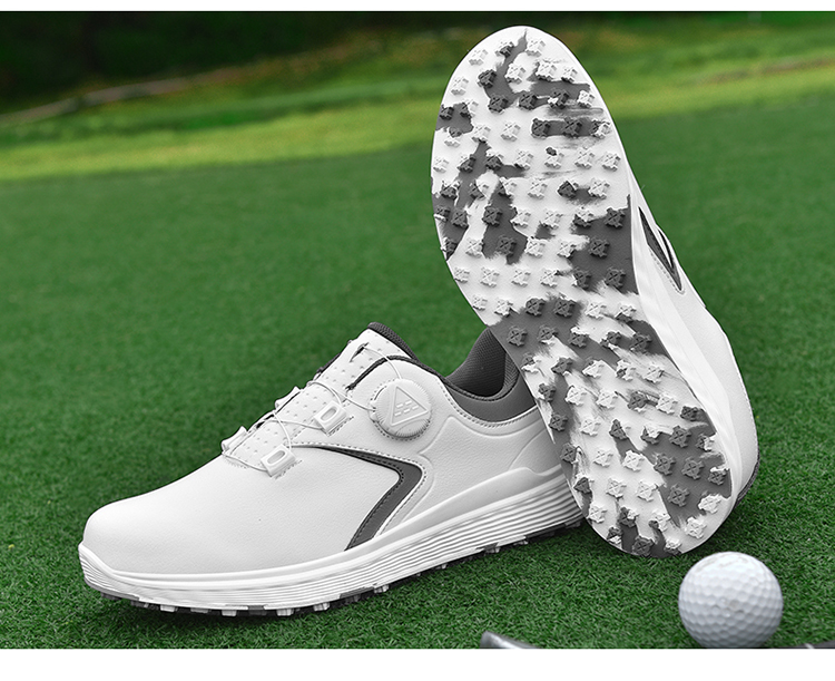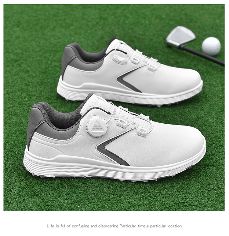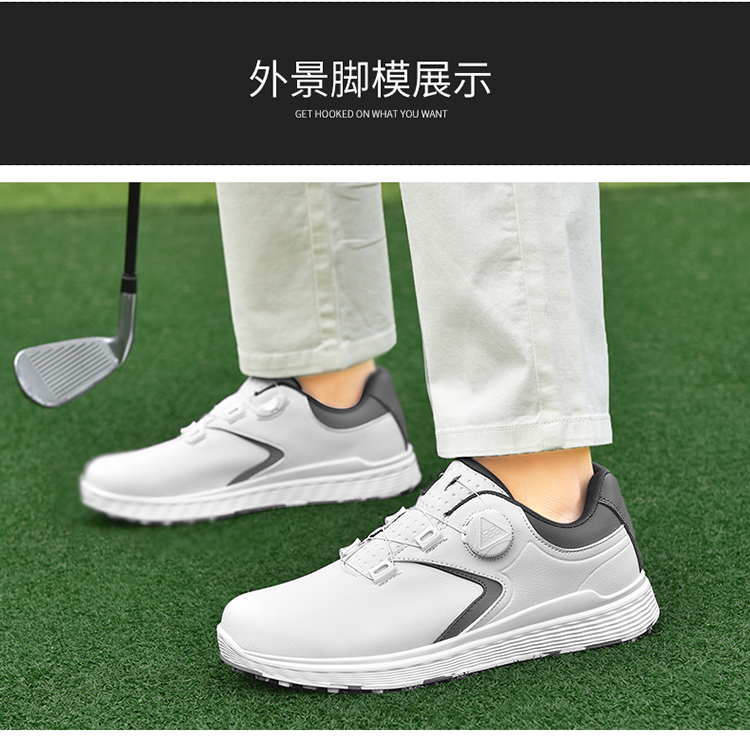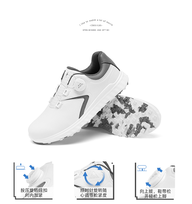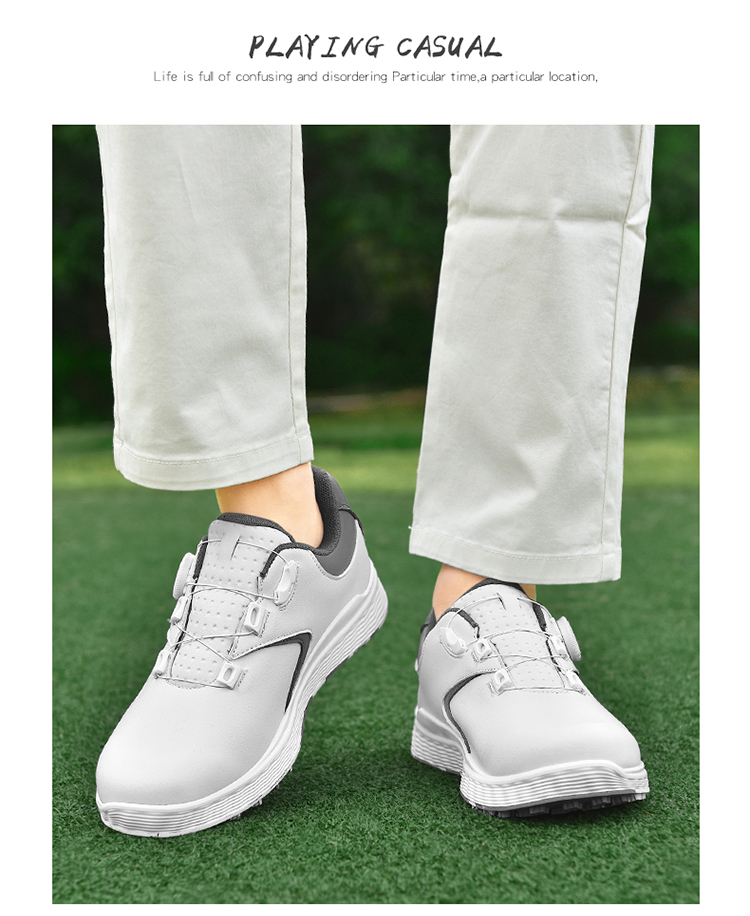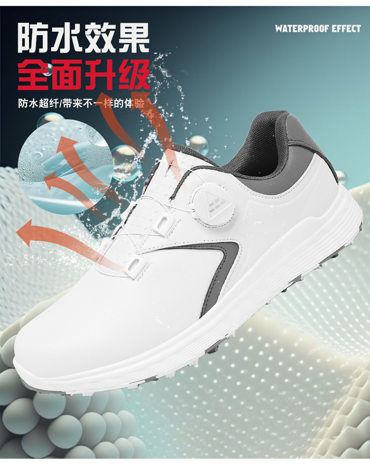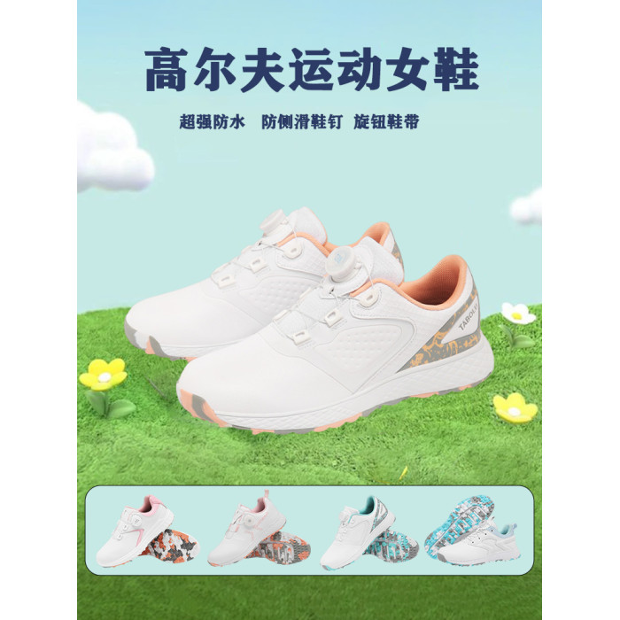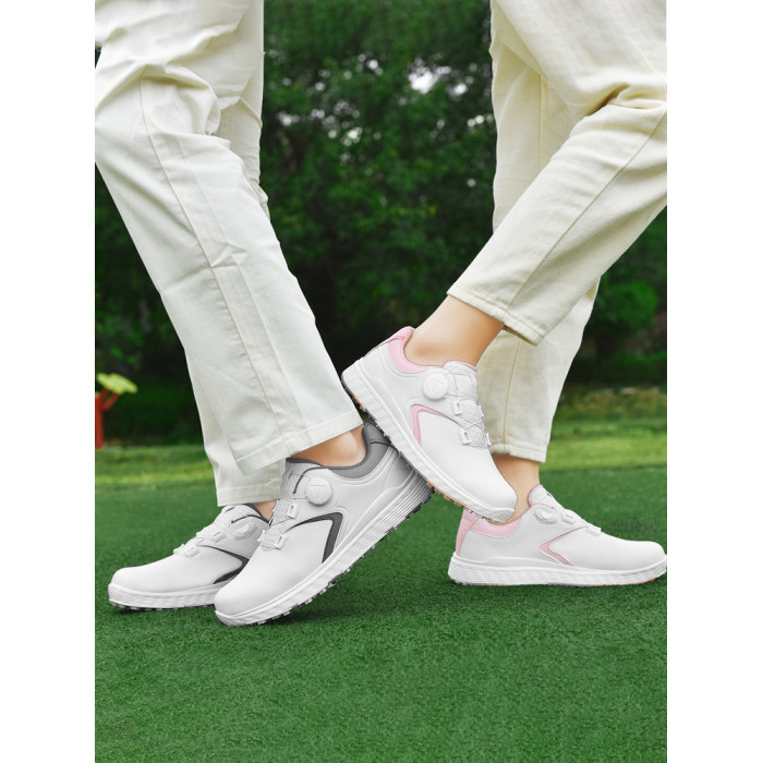 高爾夫球鞋女士舒適防水自動旋鈕伸縮鞋帶防滑固定釘戶外運動鞋