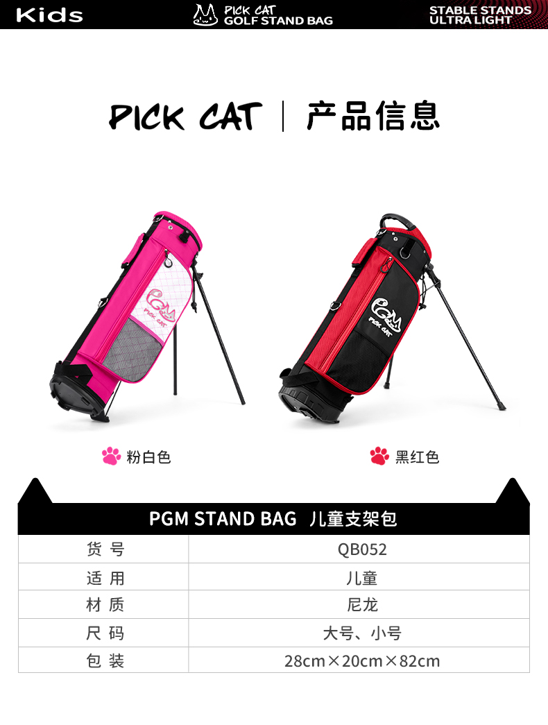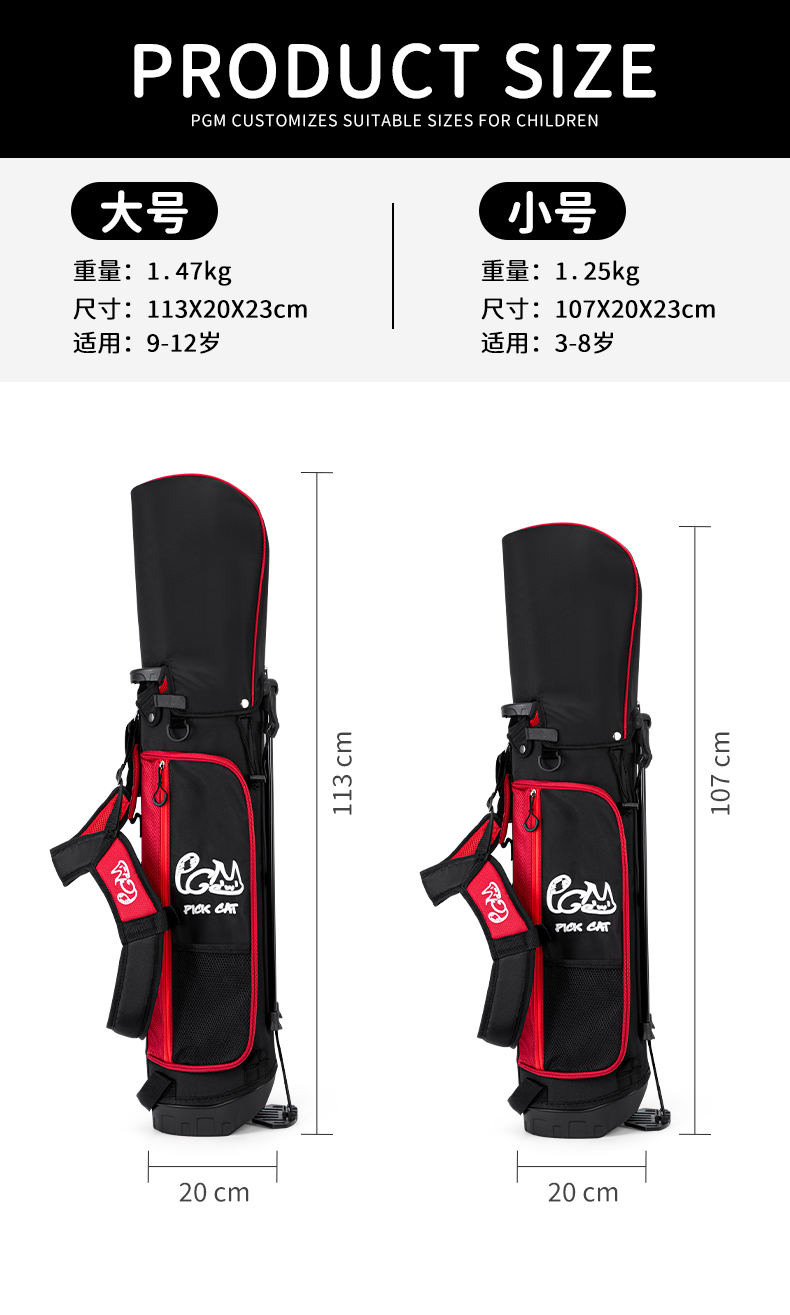 PGM兒童高爾夫球包3-12嵗球袋男童支架包青少年女童可攜式球桿包