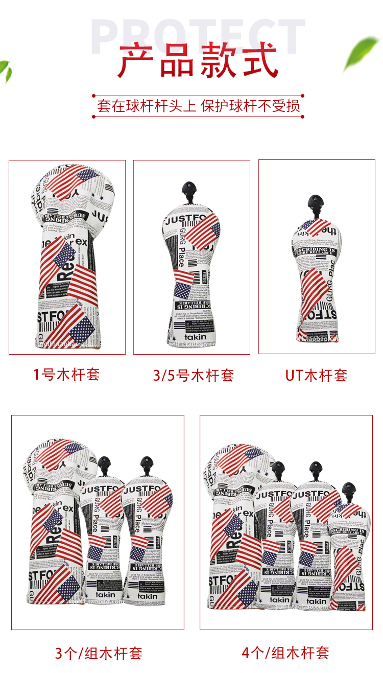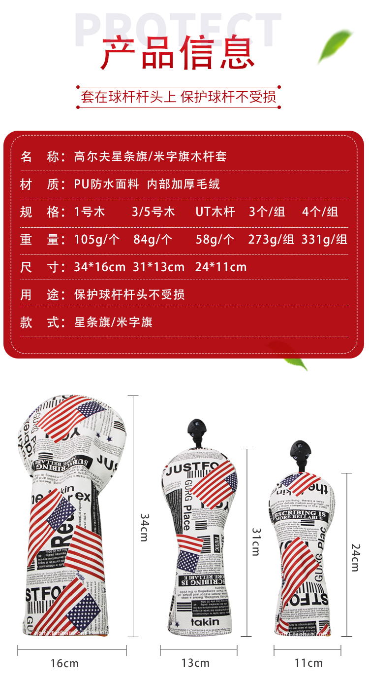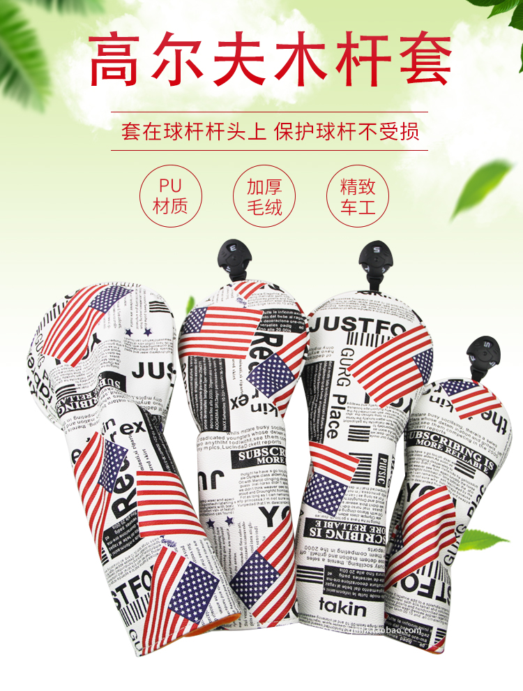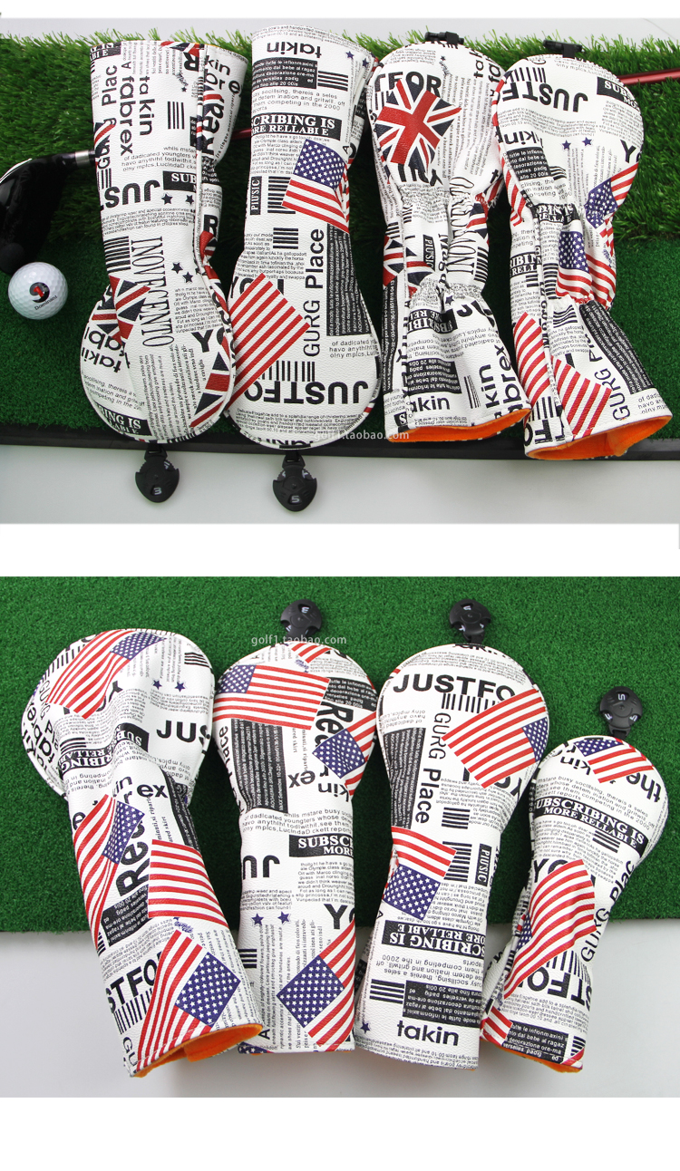 高爾夫木桿套星條旗/米字旗木桿桿頭保護套1/3/5/UT木桿套PU防水