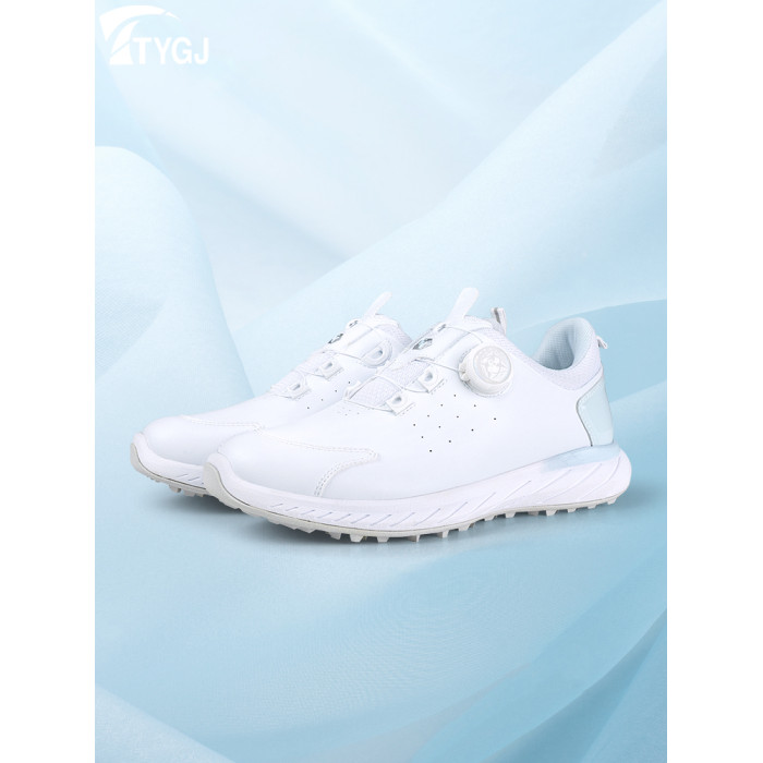 高爾夫女士球鞋防水防滑旋轉鈕鞋帶白藍粉色超纖皮固定釘運動鞋子