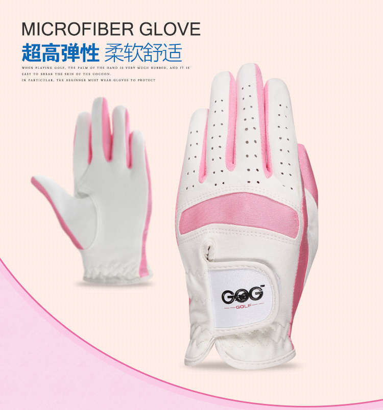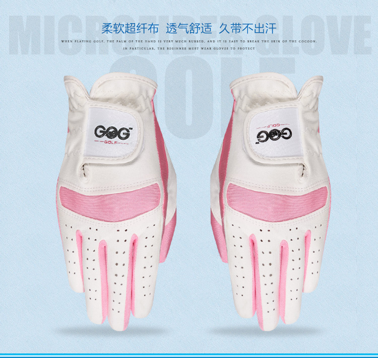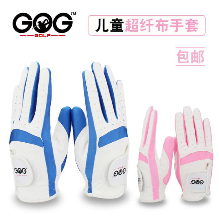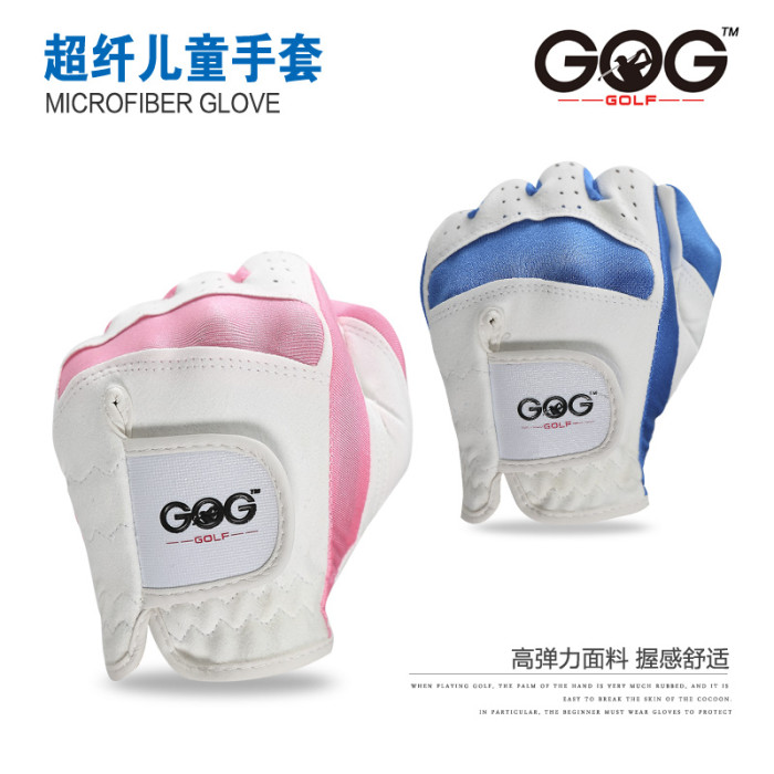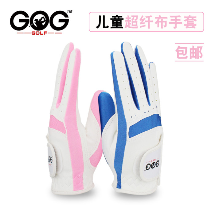高爾夫兒童手套可水洗進口優質纖維細布透氣機洗耐磨粉藍色布雙手