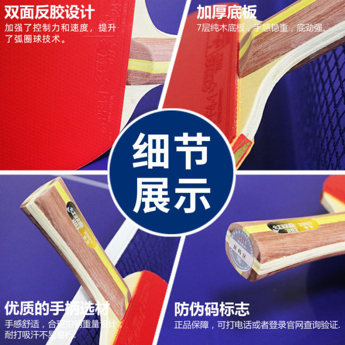 紅雙喜乒乓球拍雙拍二星級2星兒童學生比賽直拍橫拍2衹裝兵乓球拍