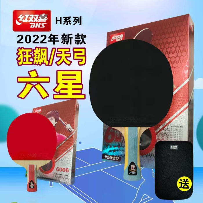 紅雙喜乒乓球拍專業級單拍六星狂飚學生6星直拍橫拍兵乓拍6星雙拍