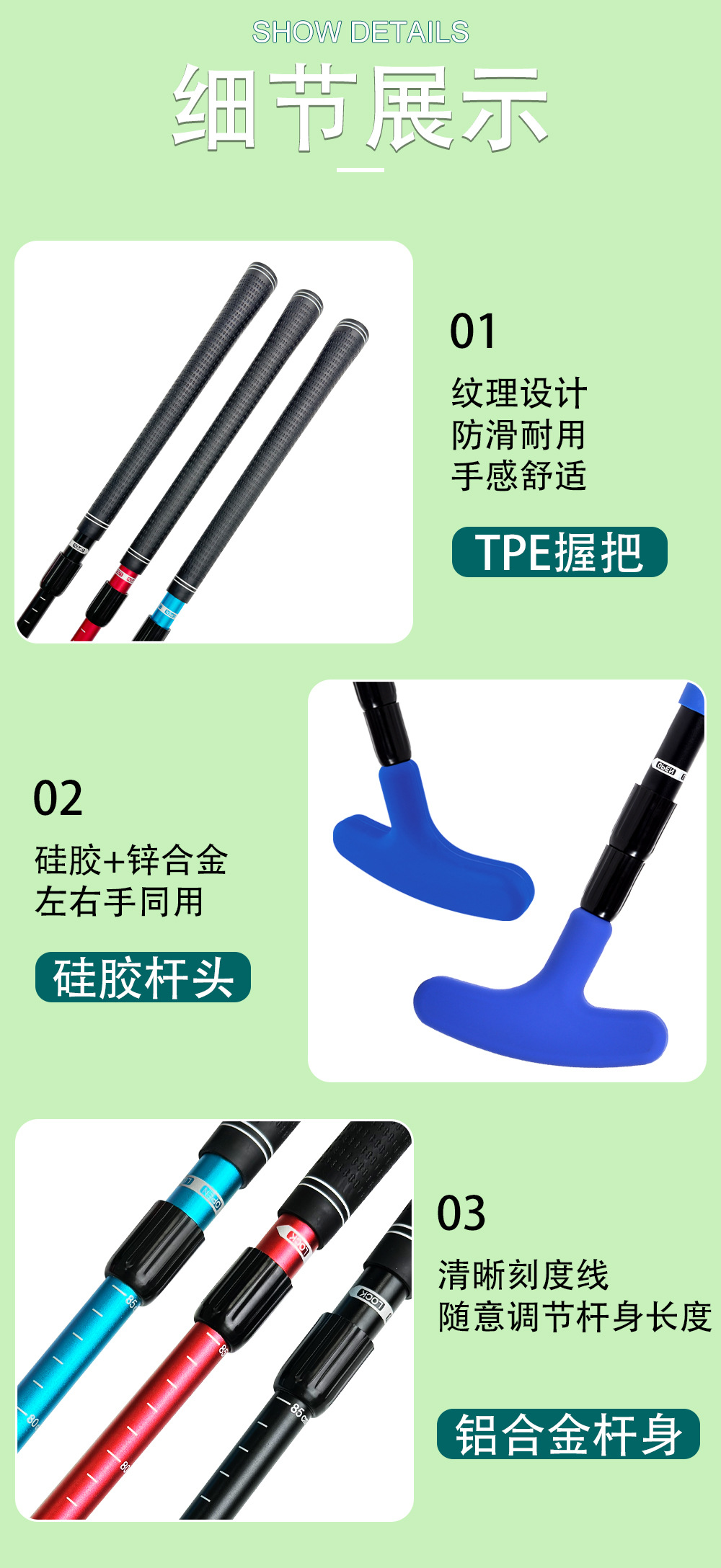 加工  3節鋁合金矽膠球頭高爾夫3節伸縮可調節長短的高爾