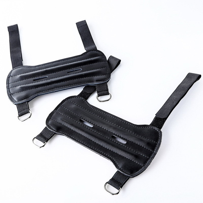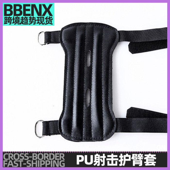 兩孔黑色PU料護臂反曲弓射擊射箭運動弓箭射擊護臂套護手拳擊護臂
