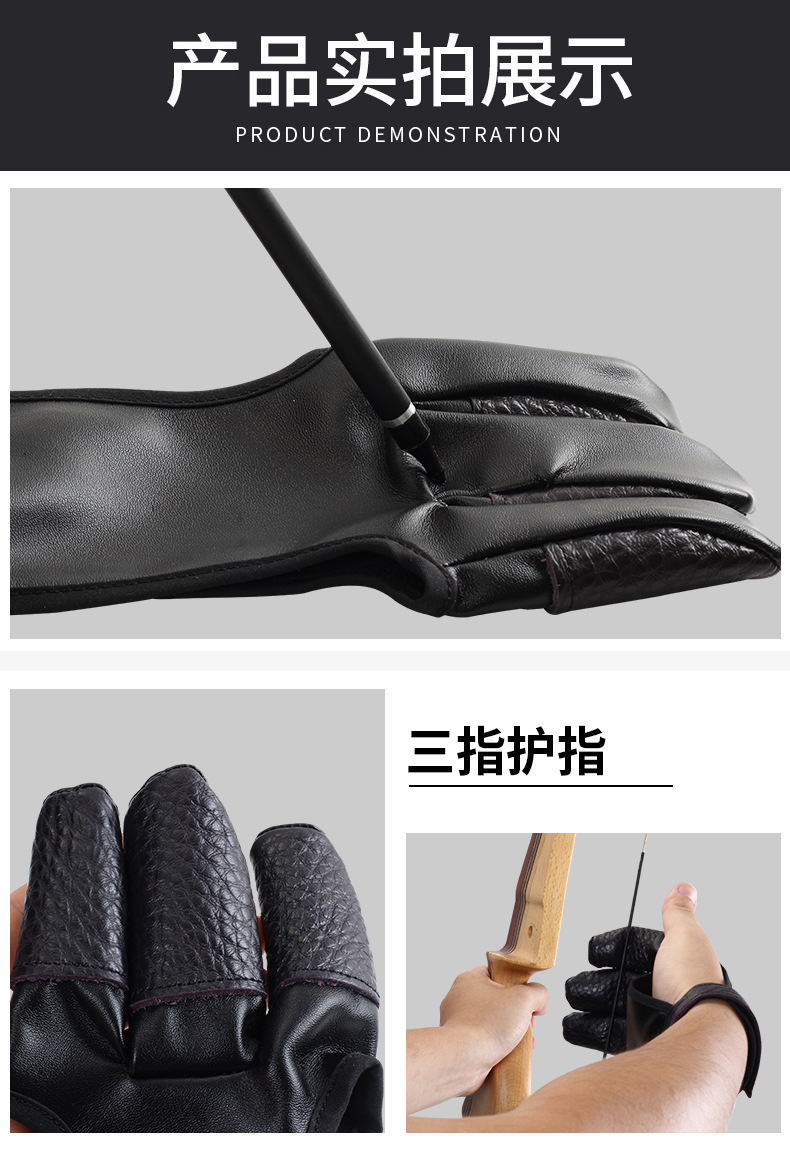 射箭三指手套戶外美獵弓箭護指護具傳統美獵弓反曲射箭三指護指套