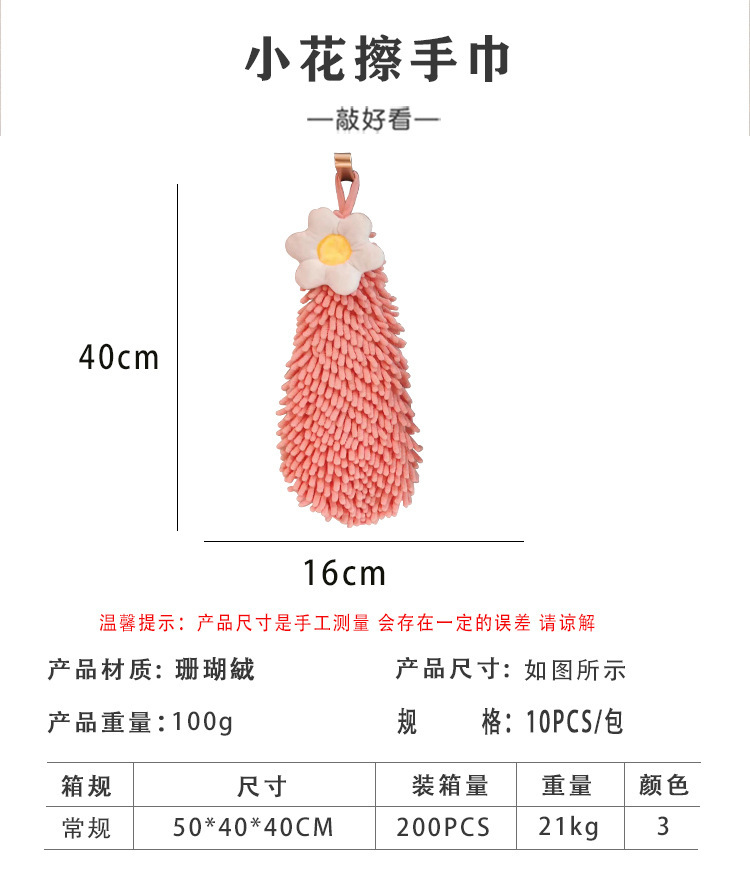 可愛花朵擦手巾掛式家用廚房衛生間浴室感吸水速乾加厚抹手巾