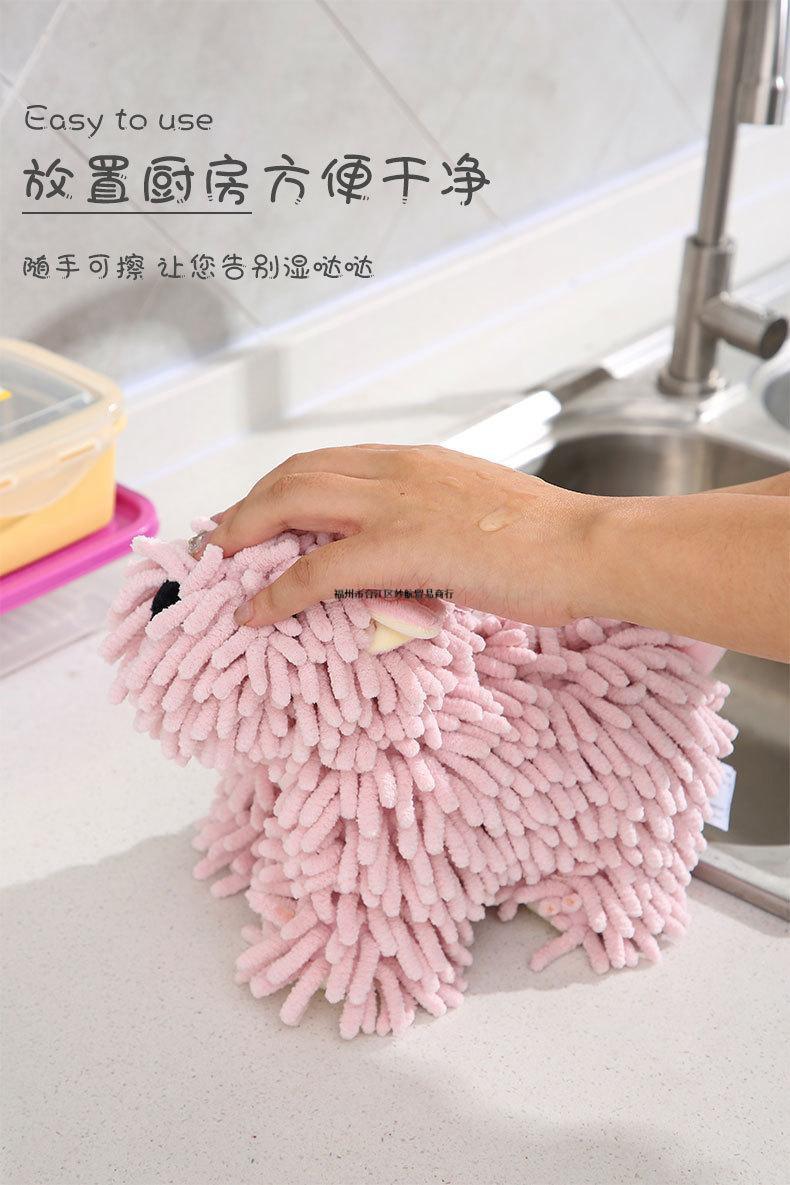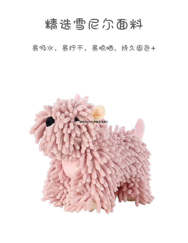 卡通小狗雪尼爾擦手巾萌趣多功能家用卡通動物創意擦手巾柔軟可愛