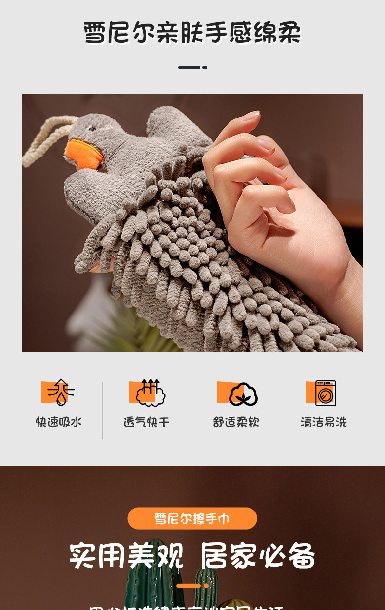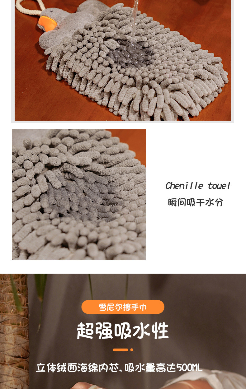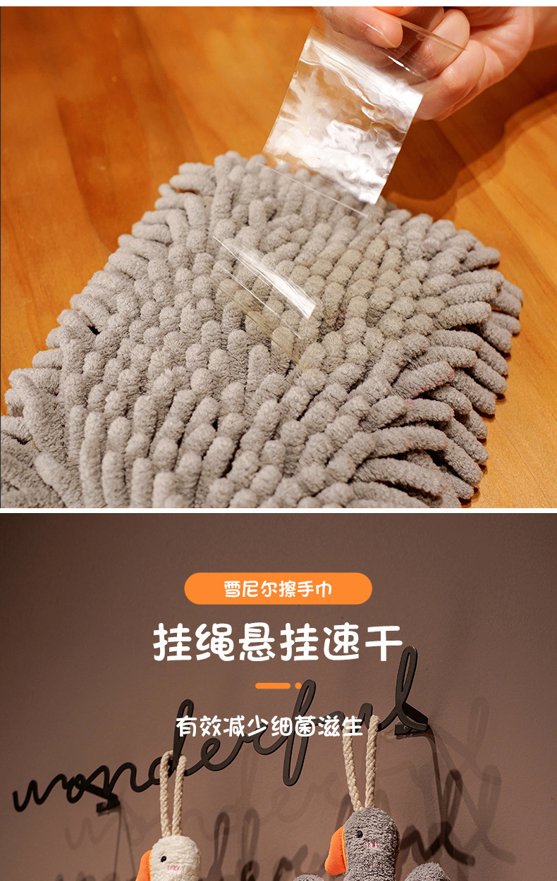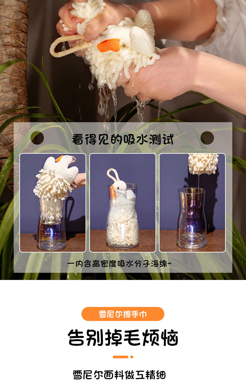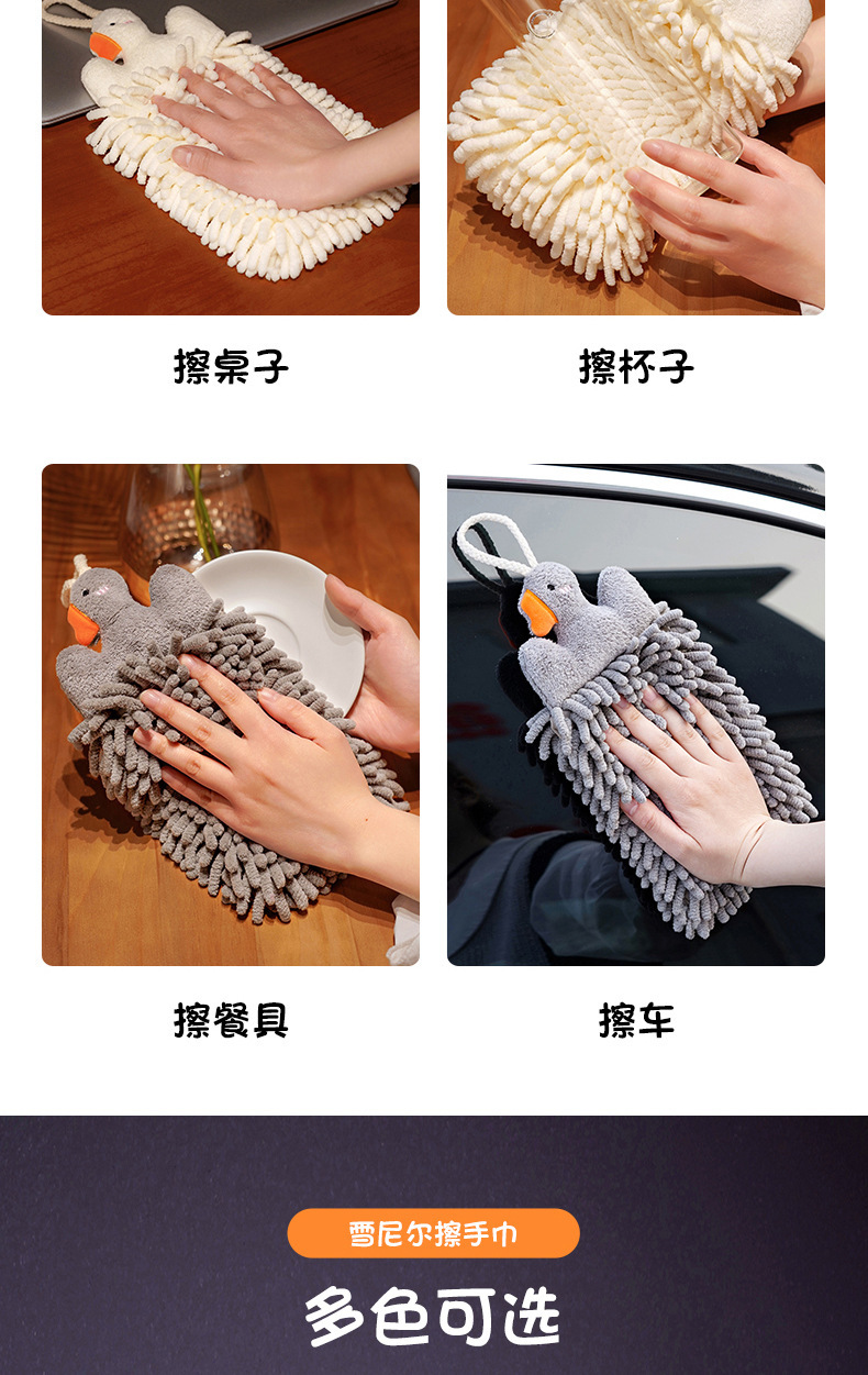 大鵞擦手巾掛式可愛毛巾兒童衛生間廚房抹手布雪尼爾球吸水不掉毛