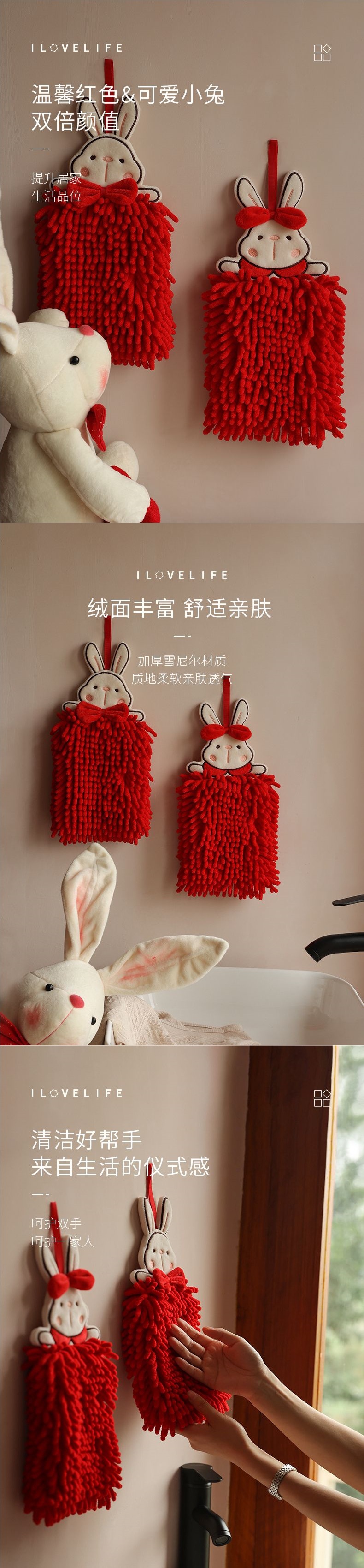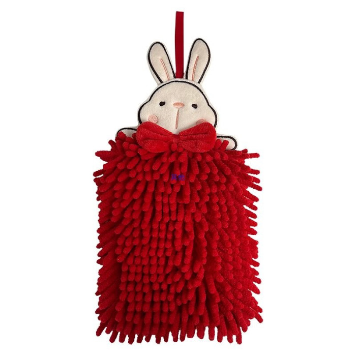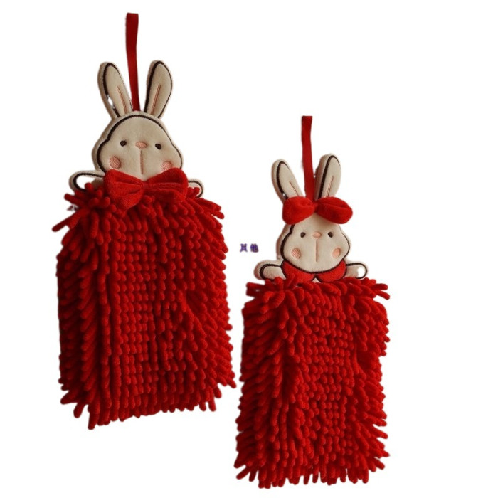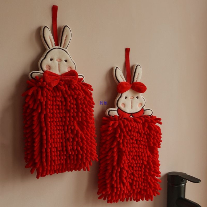 擦手巾掛式可愛兔子吸水不掉毛紅色結婚洗手間廚房雪尼爾毛巾手帕