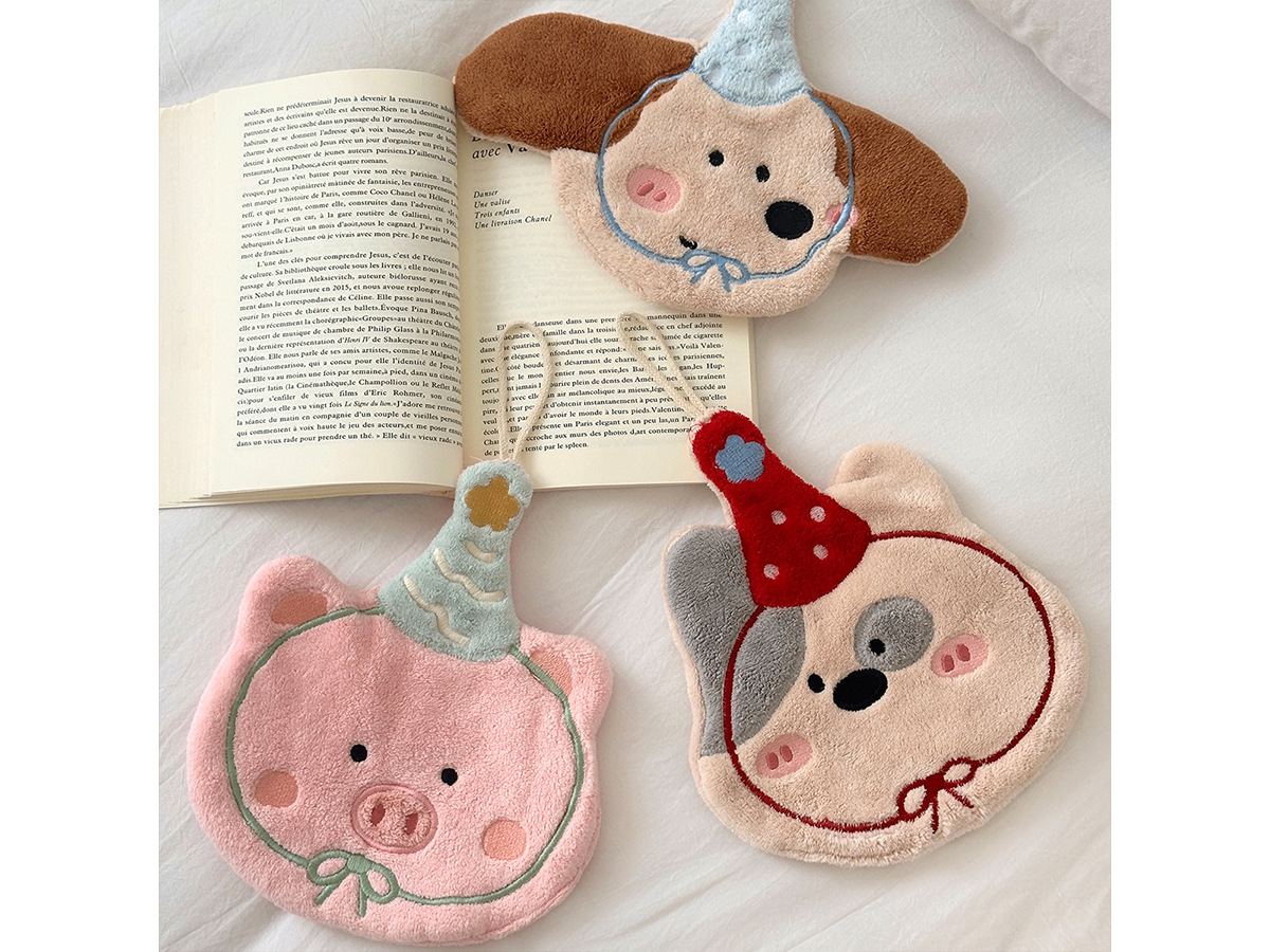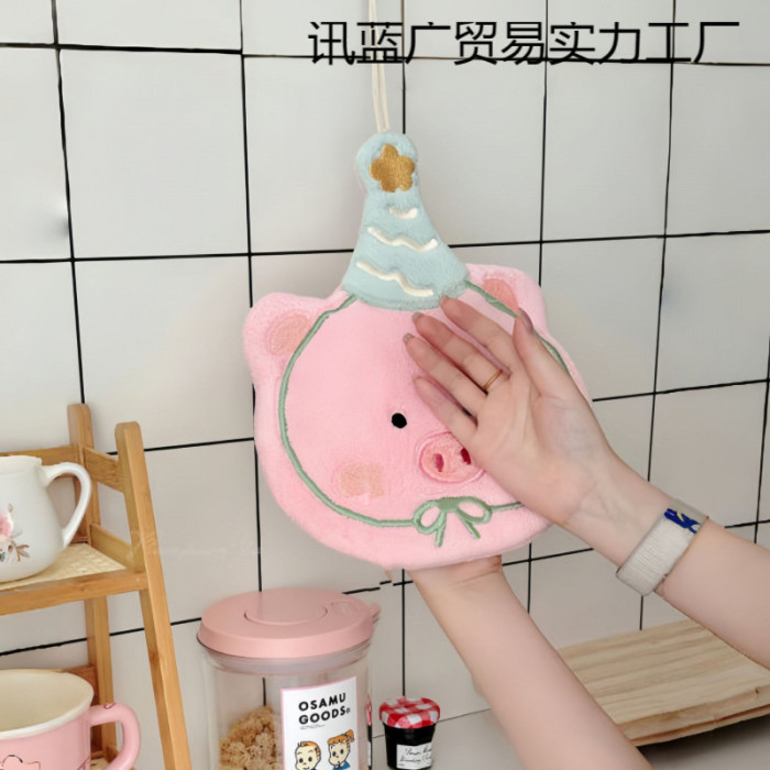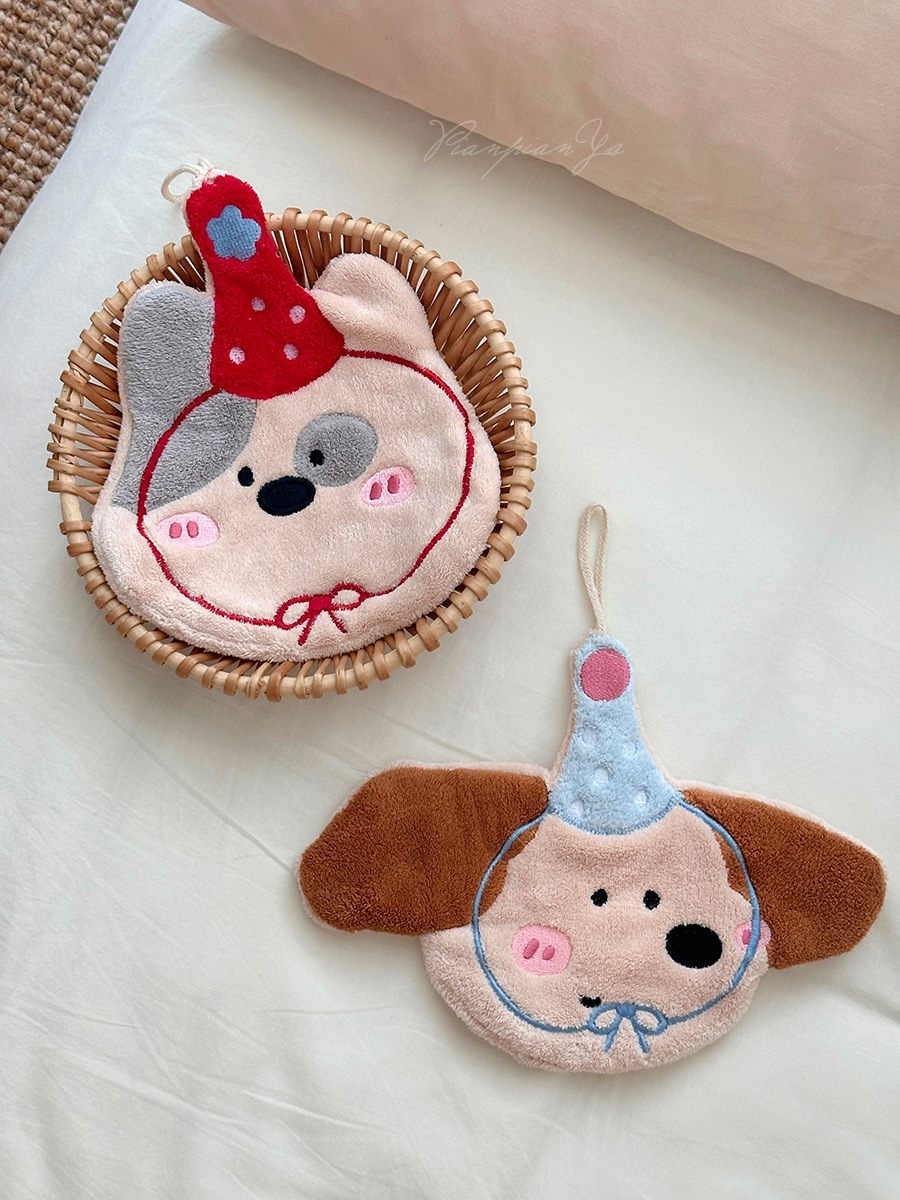 可愛刺綉小狗擦手巾廚房浴室可掛式卡通珊瑚絨小毛巾吸水小方巾