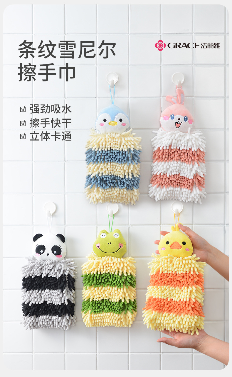 潔麗雅雪尼爾擦手巾廚房加厚吸水快乾毛巾衛生間卡通可愛兒童抹布