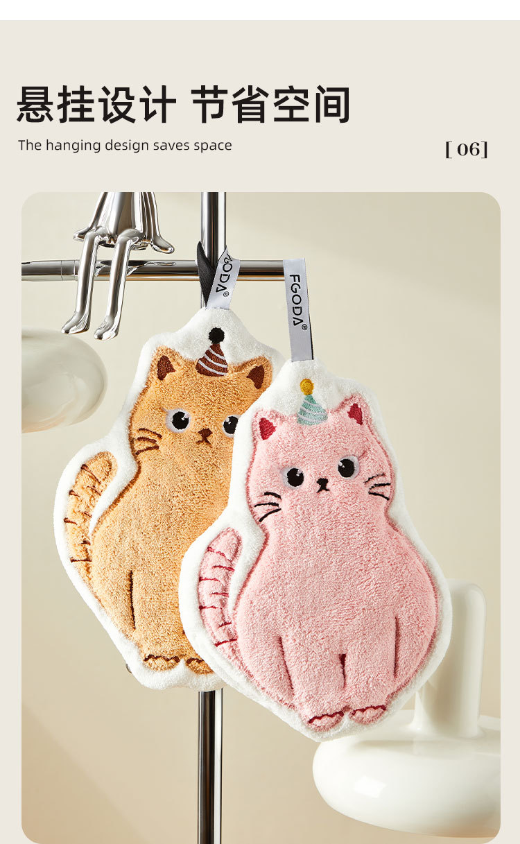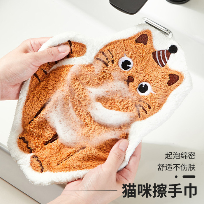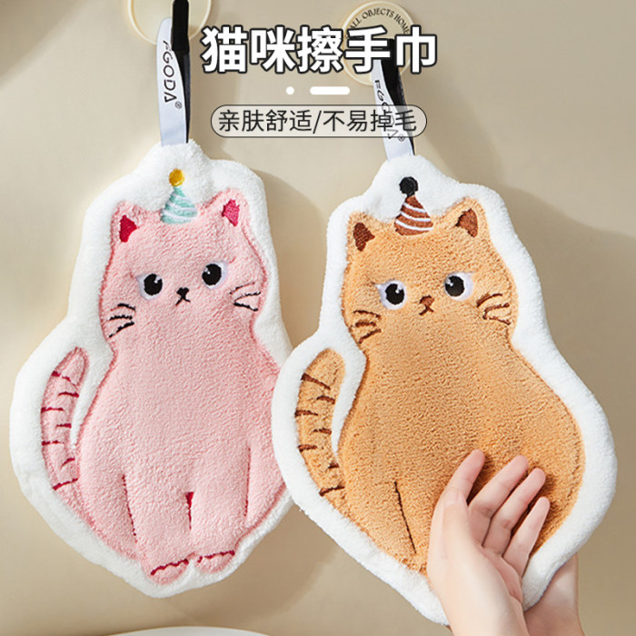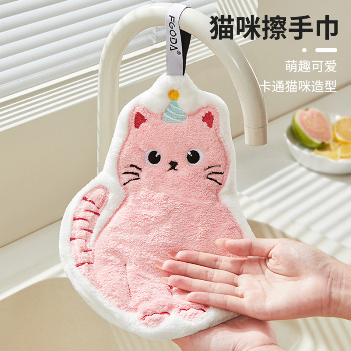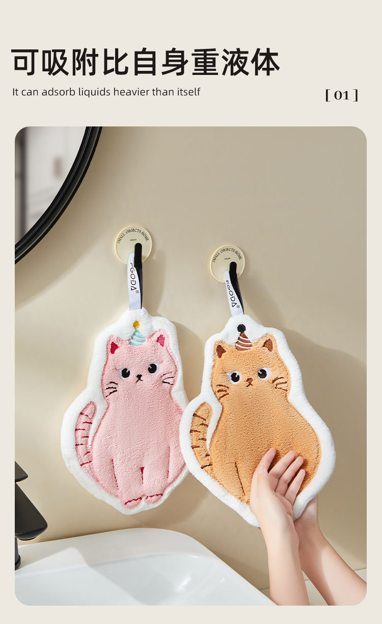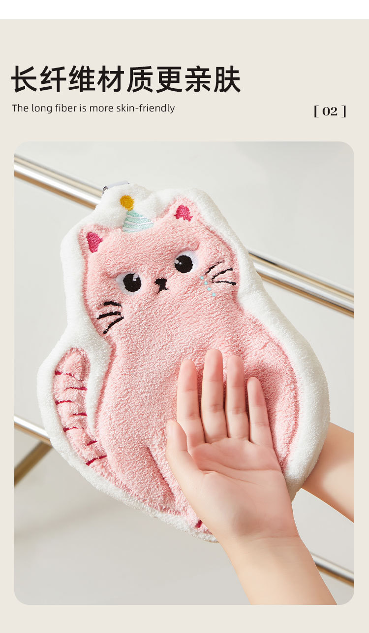 新款擦手巾家用可愛卡通貓貓款便捷可掛式雙層加厚速乾吸水擦