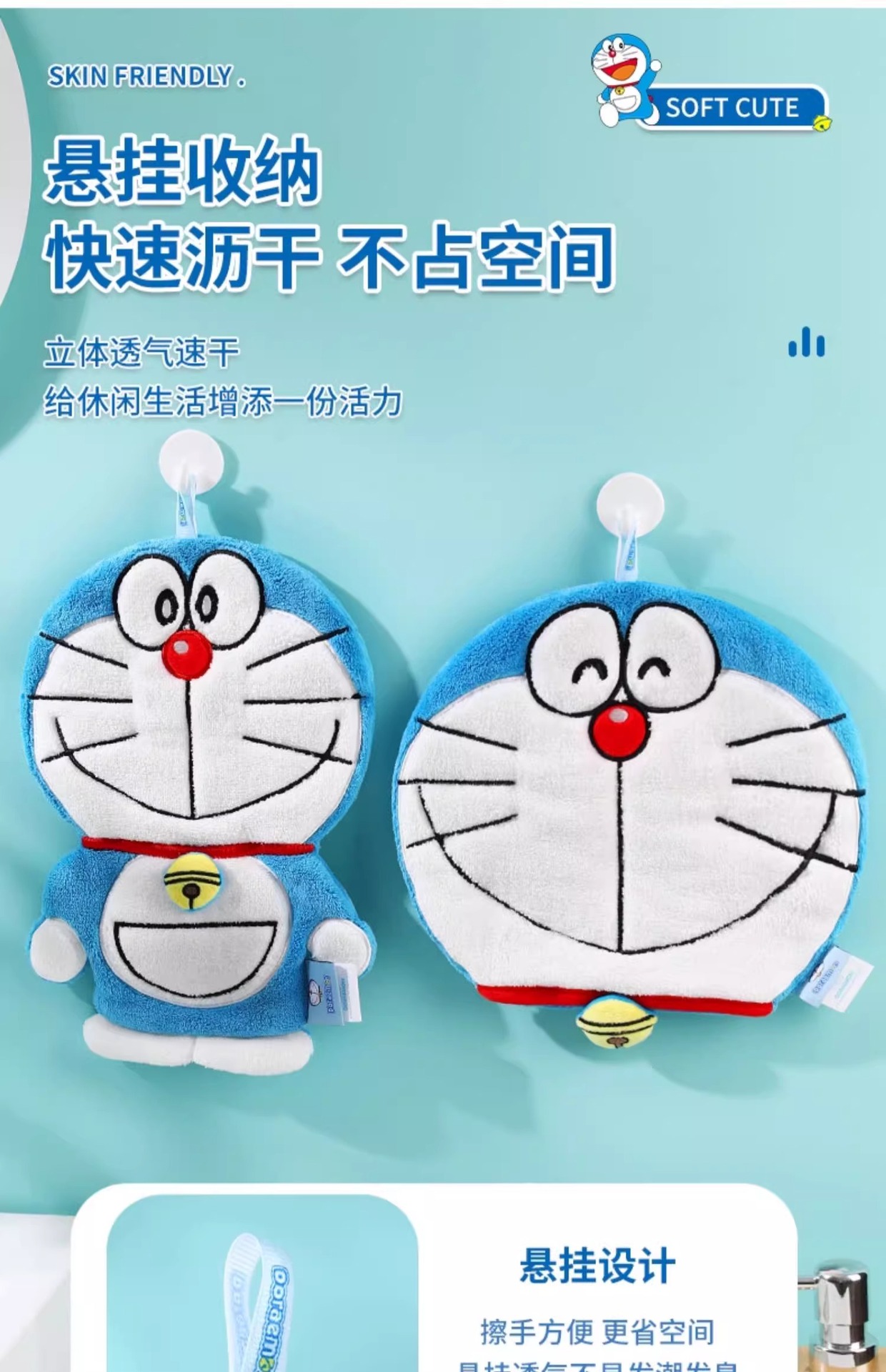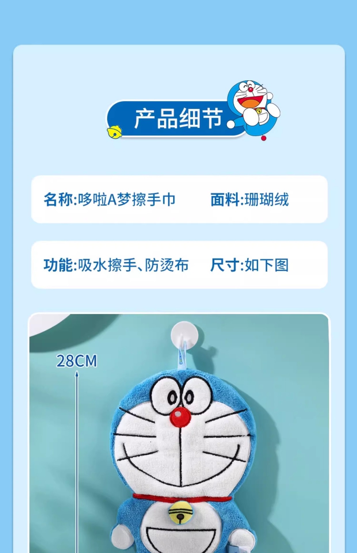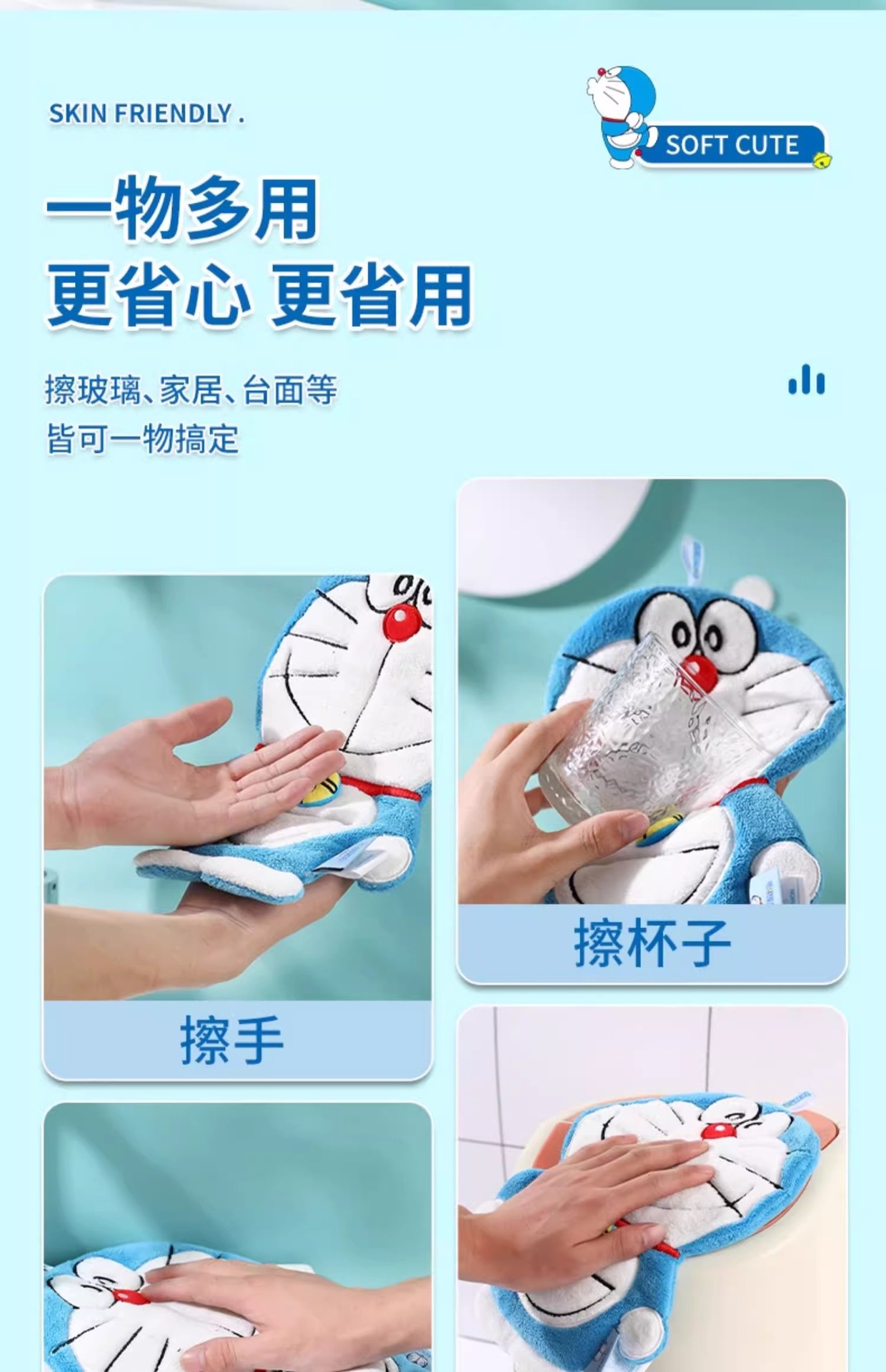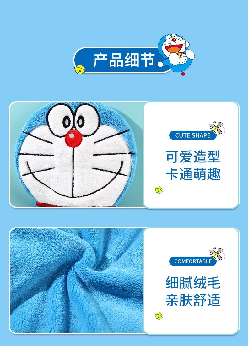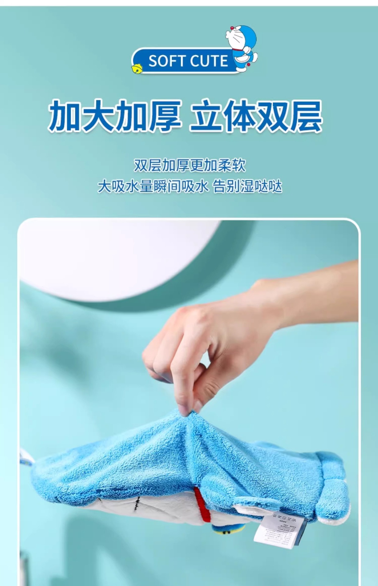 哆啦A夢正版擦手巾卡通加厚珊瑚絨吸水速乾學生可愛擦手毛巾手巾