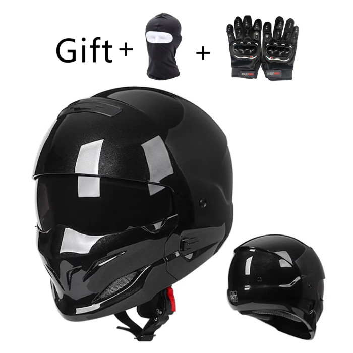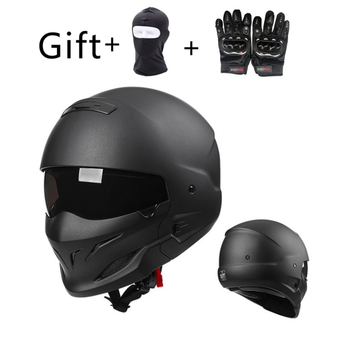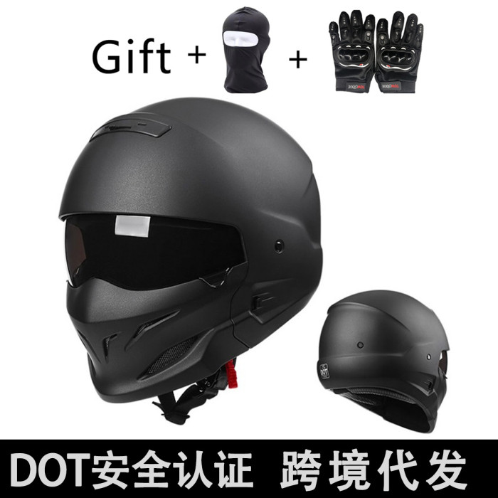 版黑蠍子頭盔男復古組合頭盔半盔四季騎行機車四季
