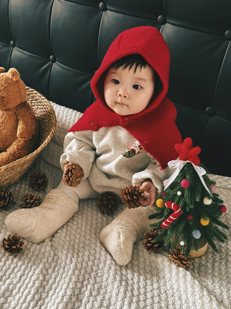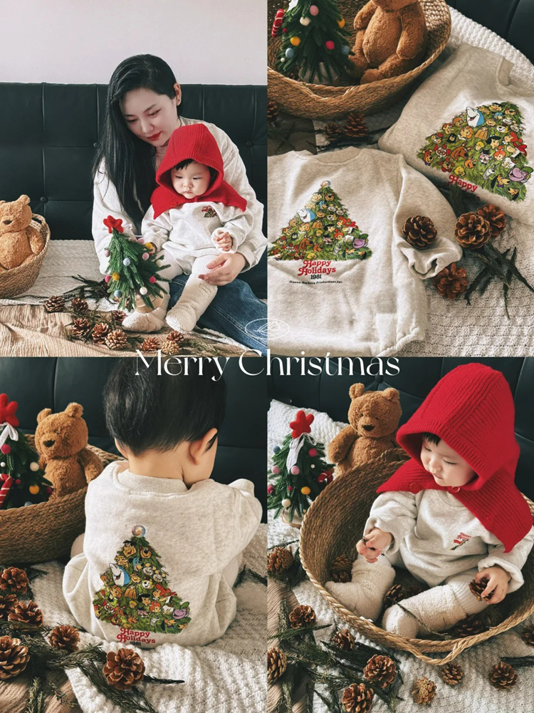 小月齡親子裝母女母子裝秋冬韓版聖誕節加絨衛衣嬰幼兒連體包屁衣