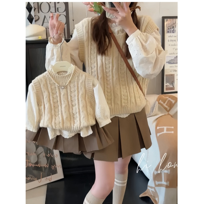 炸街親子裝2024新款秋冬一家三口洋氣韓版母女母子裝針織毛衣外套