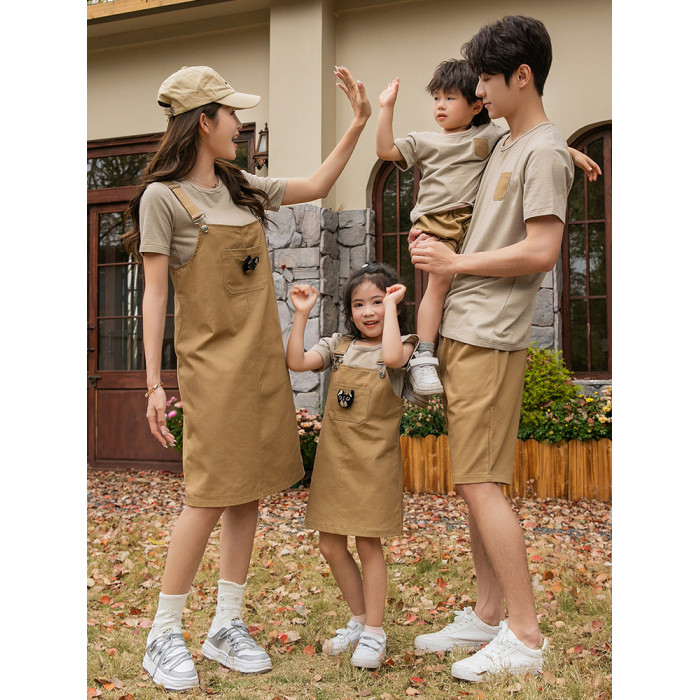 高級條紋親子裝夏季一家三口背帶套裝洋氣母子母女裝四口全家服潮