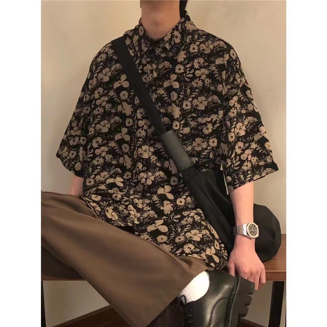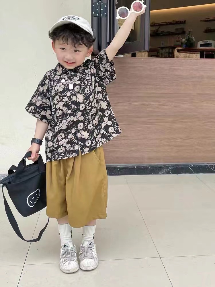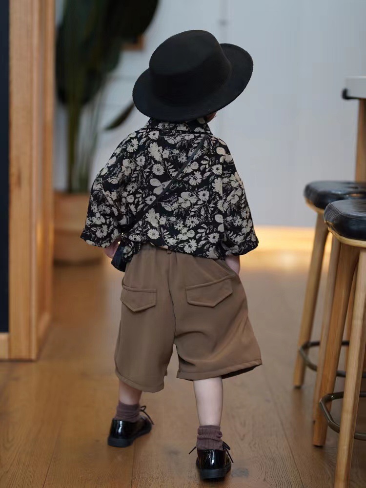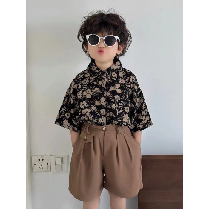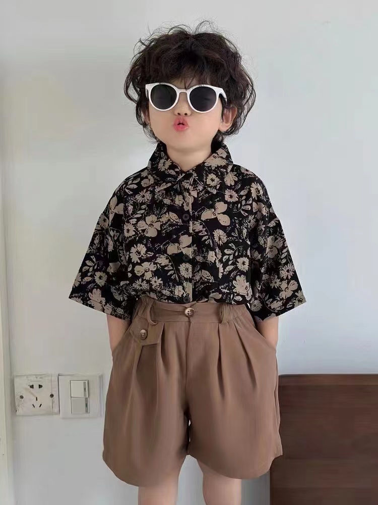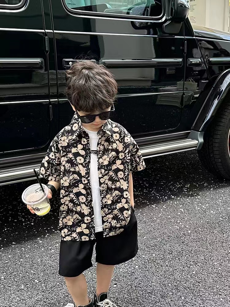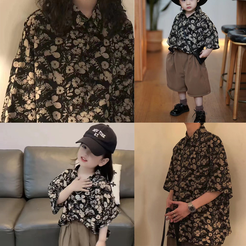 炸街親子裝夏季2025新款復古港味一家三口母子母女花襯衫痞帥襯衣