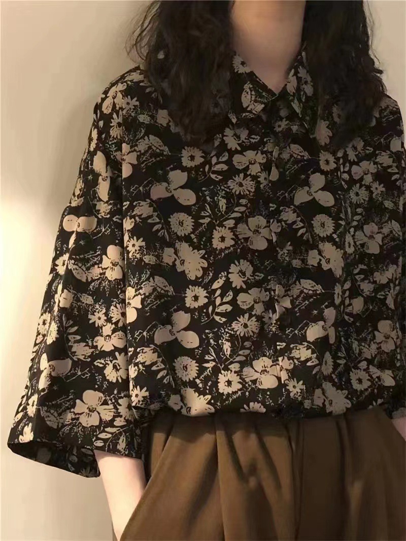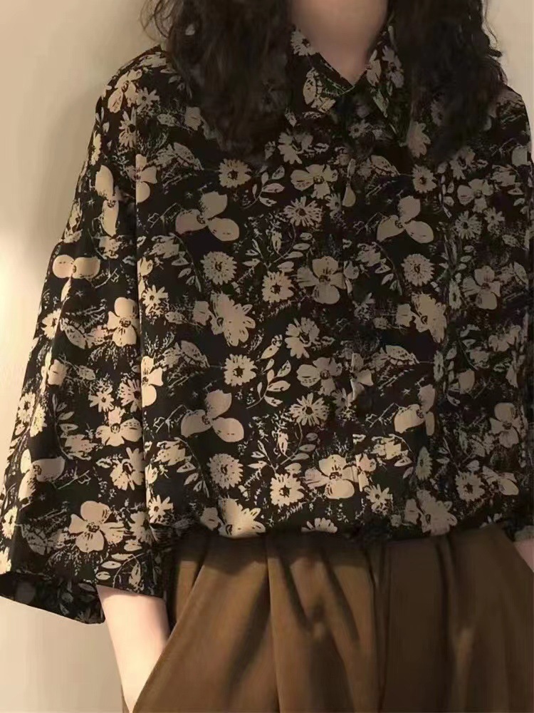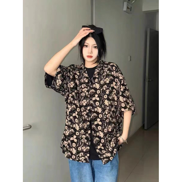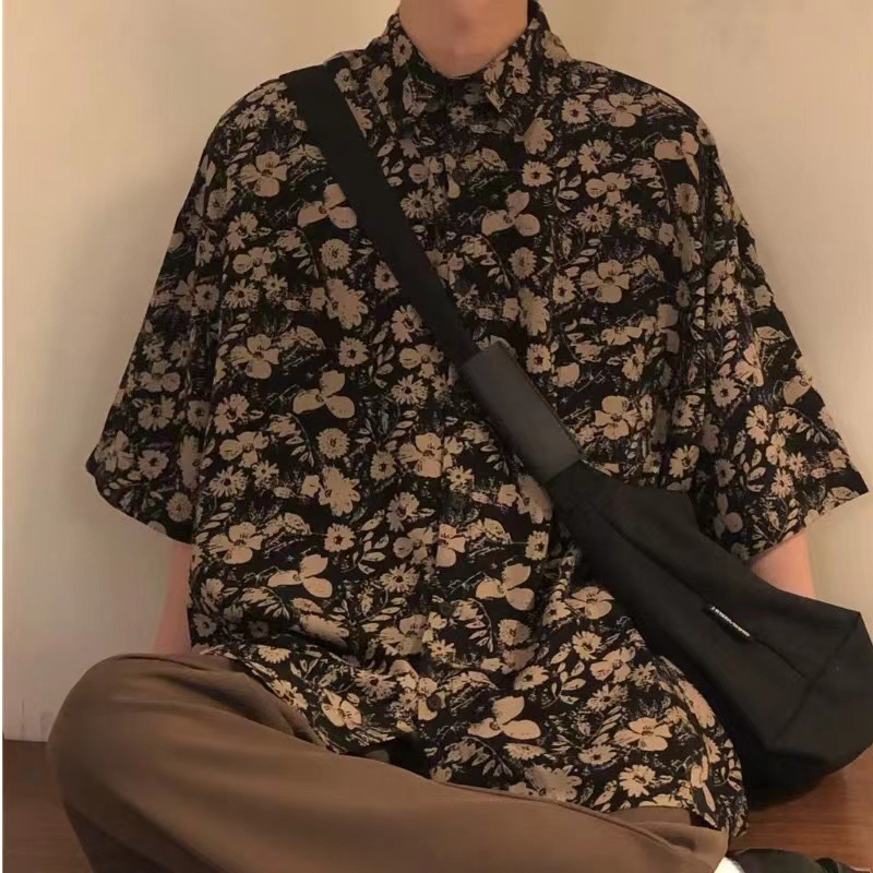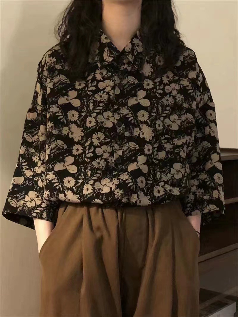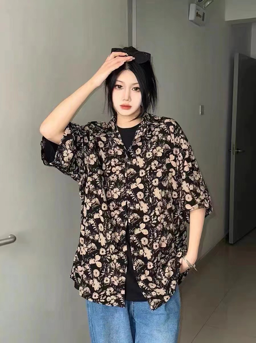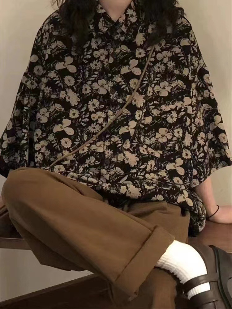 炸街親子裝夏季2025新款復古港味一家三口母子母女花襯衫痞帥襯衣