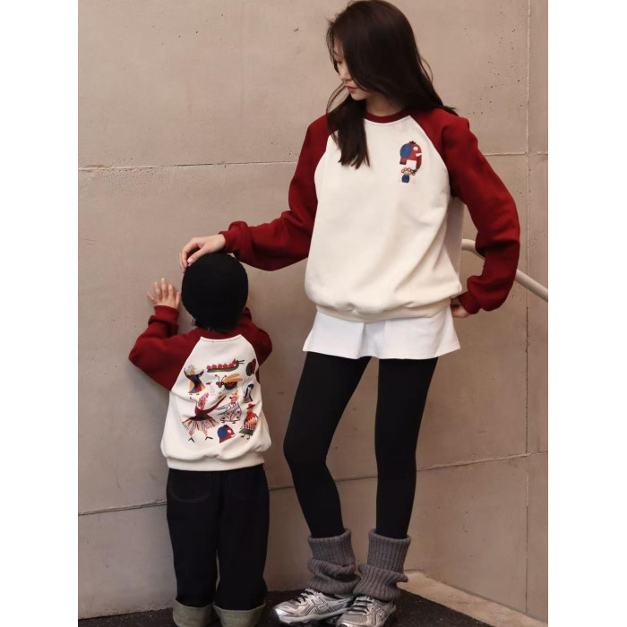 高級親子裝一家三口四口衛衣炸街母女母子嬰兒兄妹姐弟秋冬款童裝