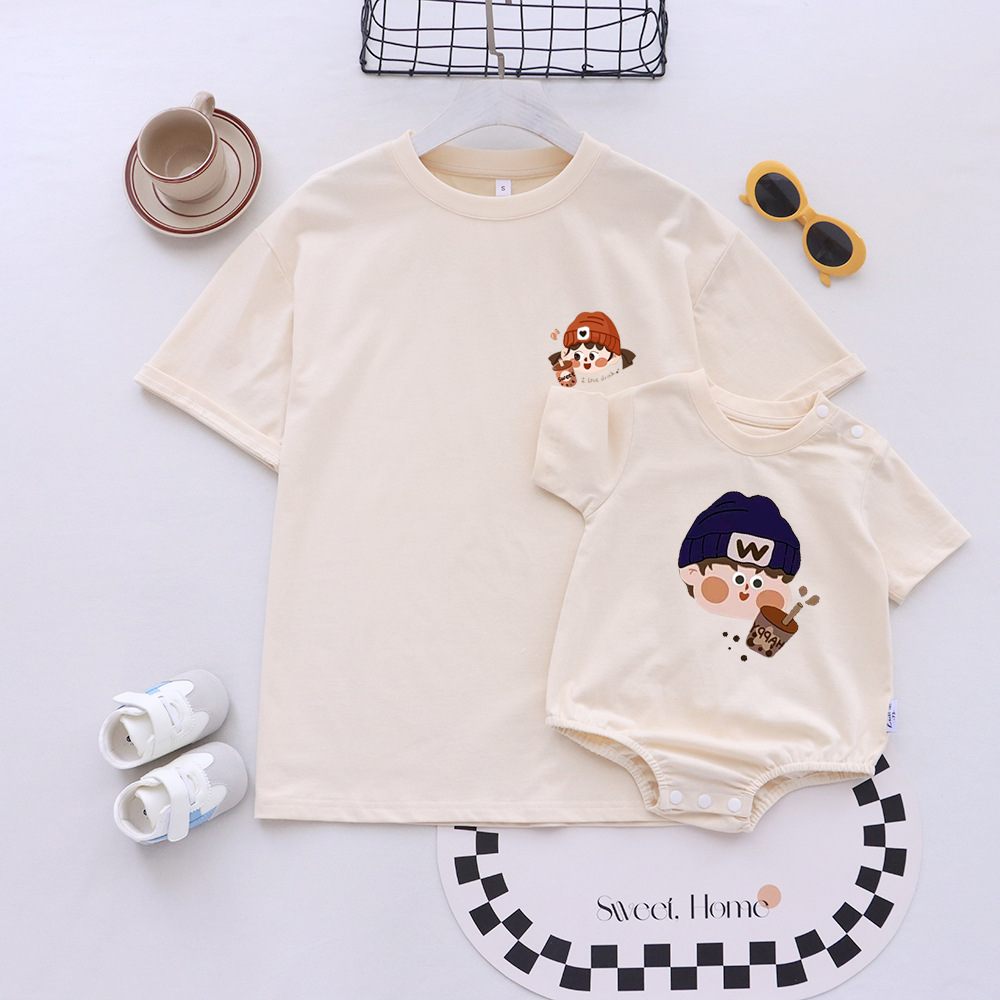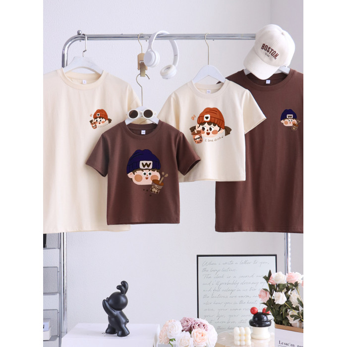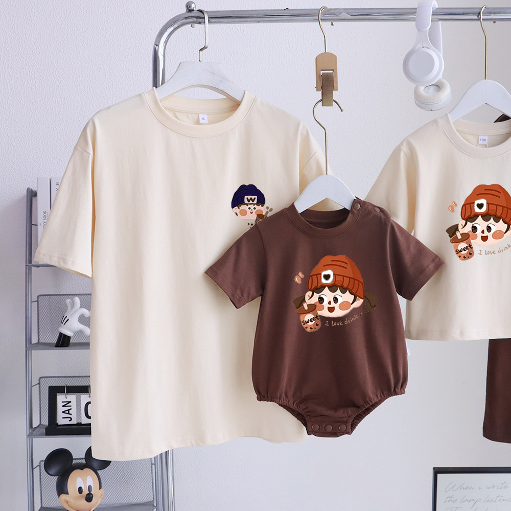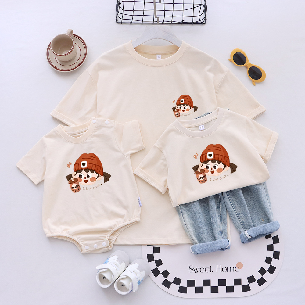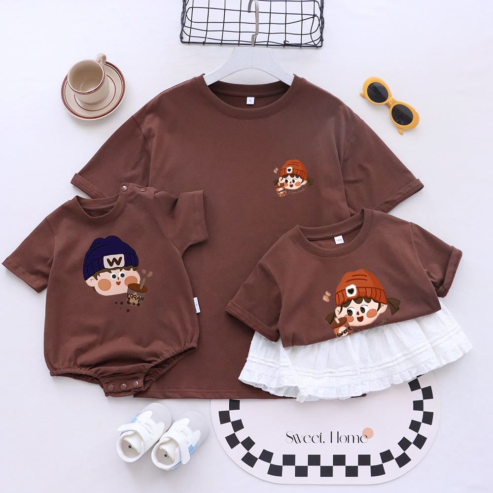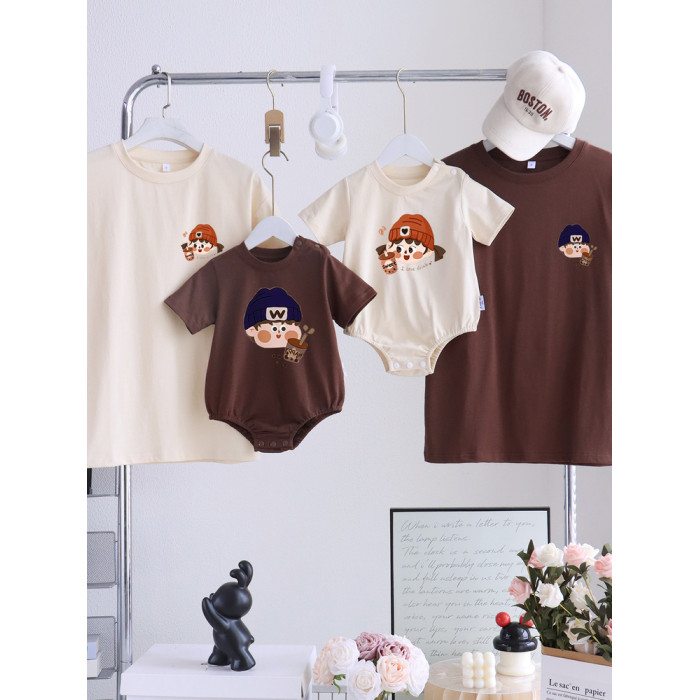 卡通親子裝T恤2025夏姐弟裝一家三四口嬰兒爬服小月齡母女母子裝