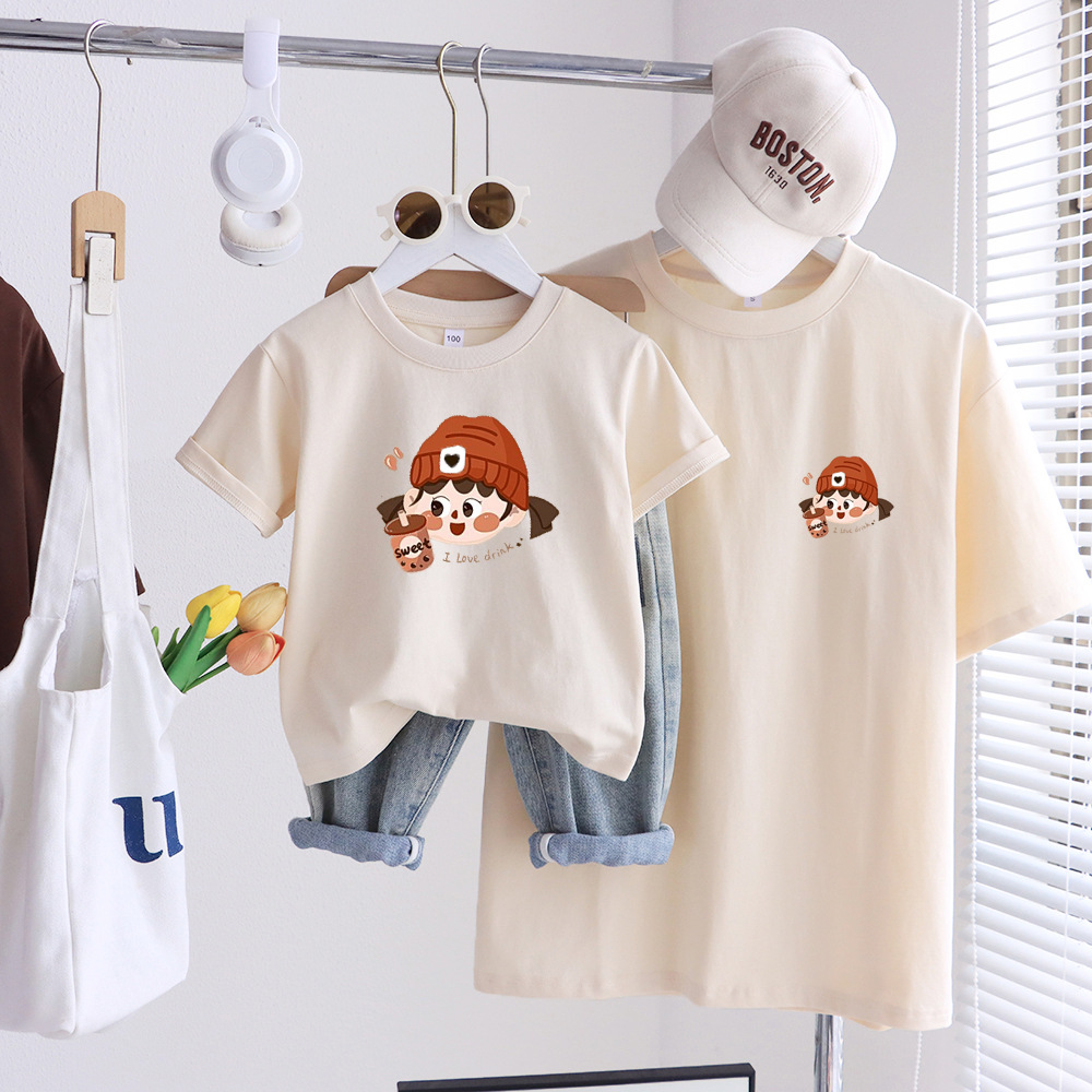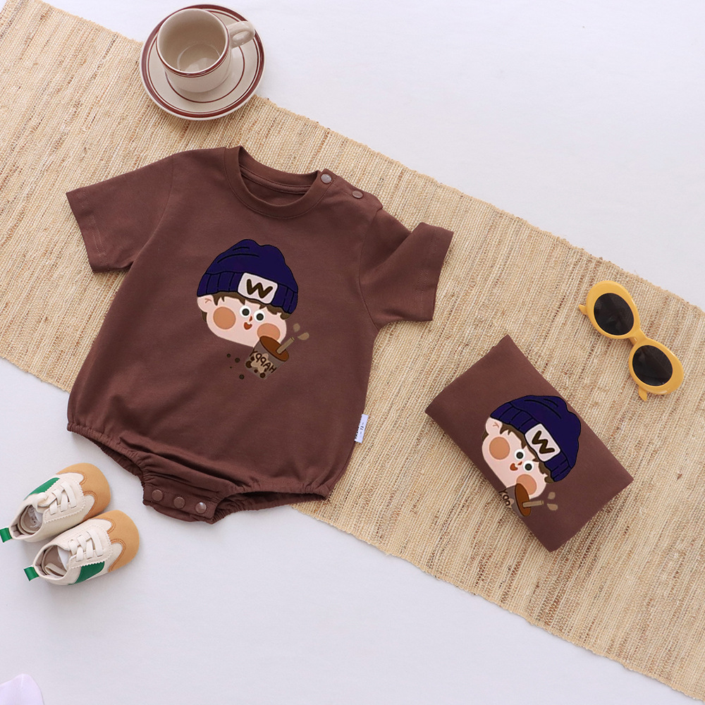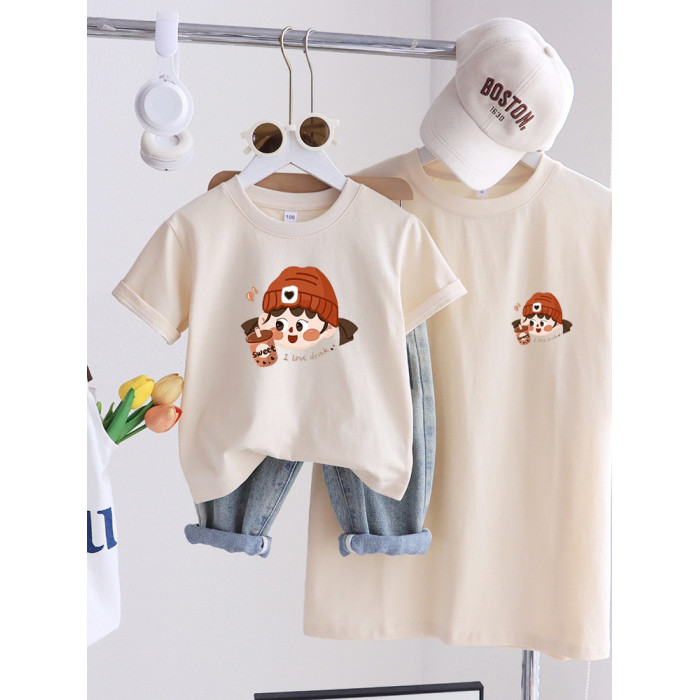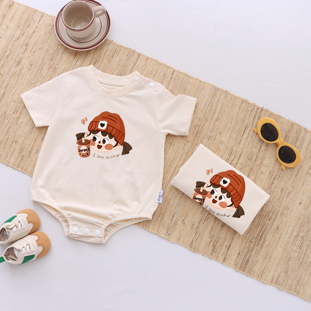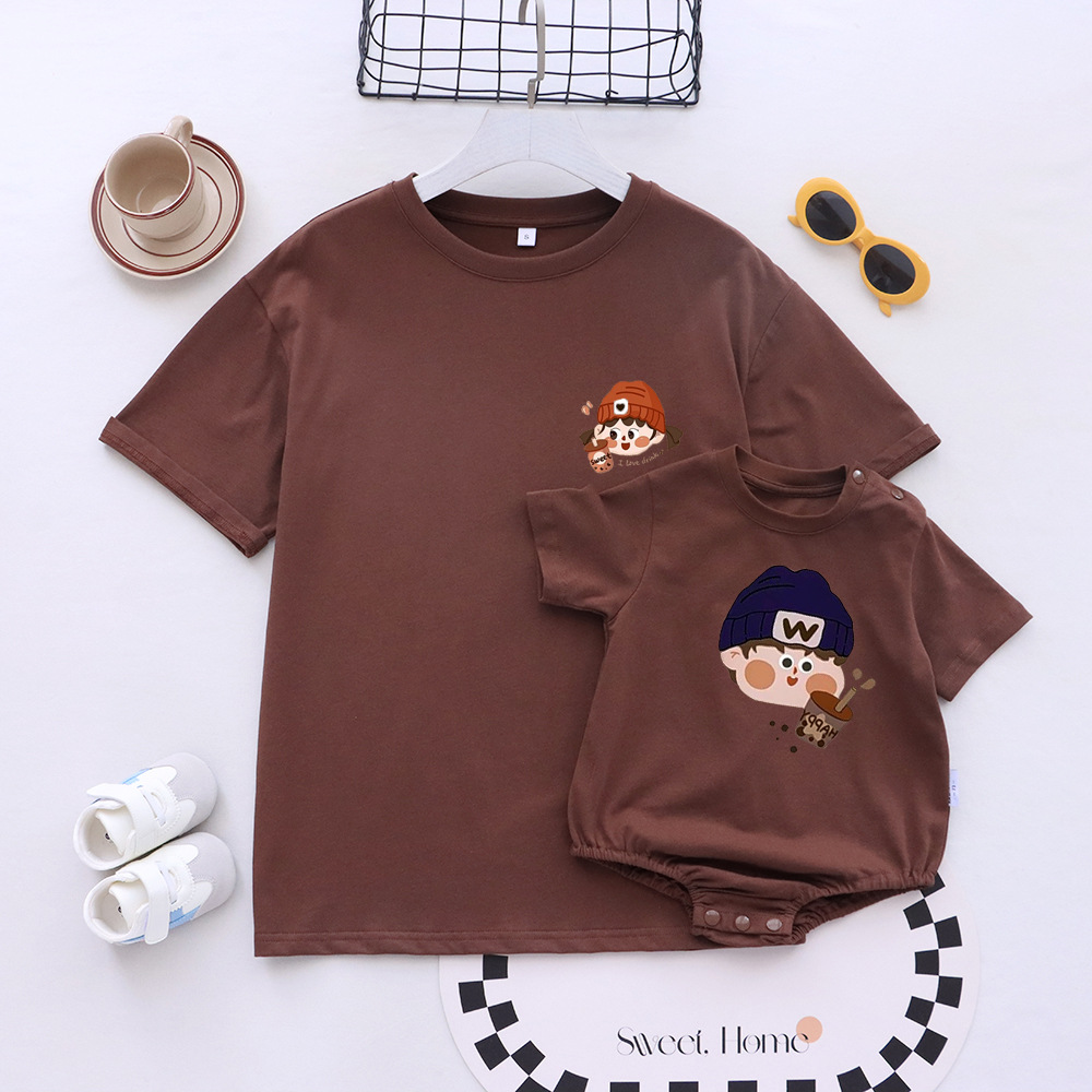 卡通親子裝T恤2025夏姐弟裝一家三四口嬰兒爬服小月齡母女母子裝