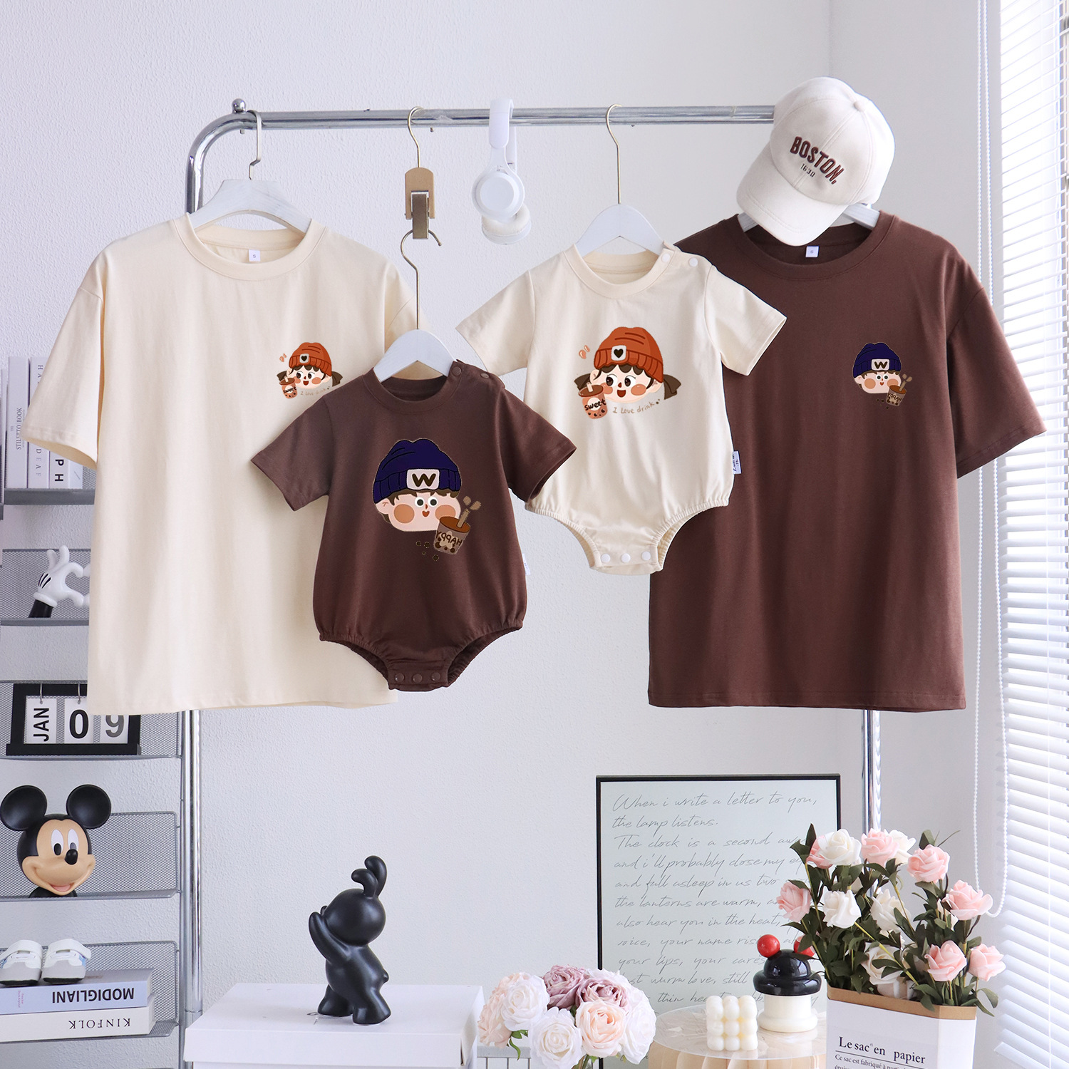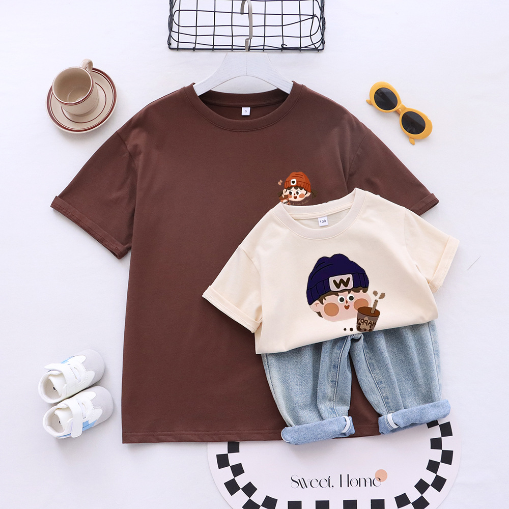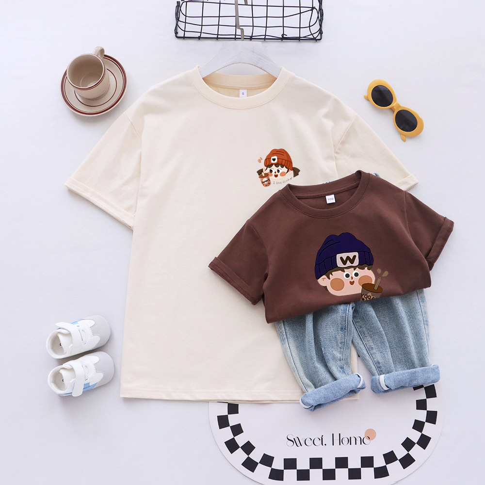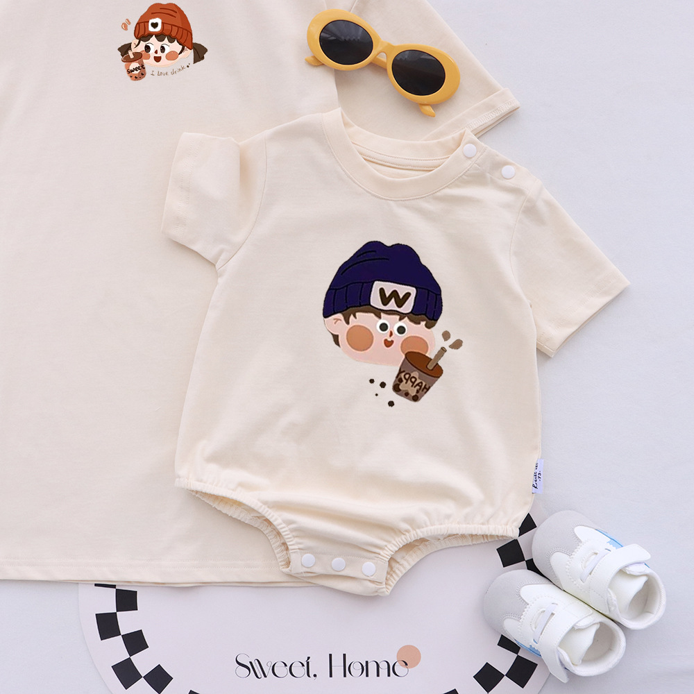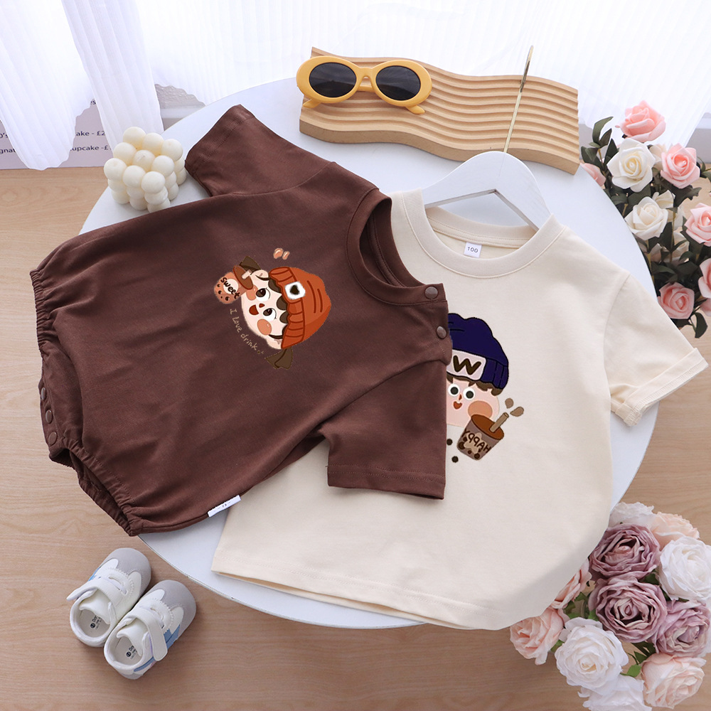 卡通親子裝T恤2025夏姐弟裝一家三四口嬰兒爬服小月齡母女母子裝