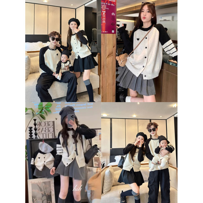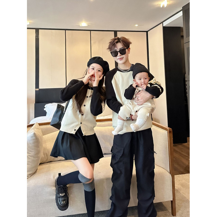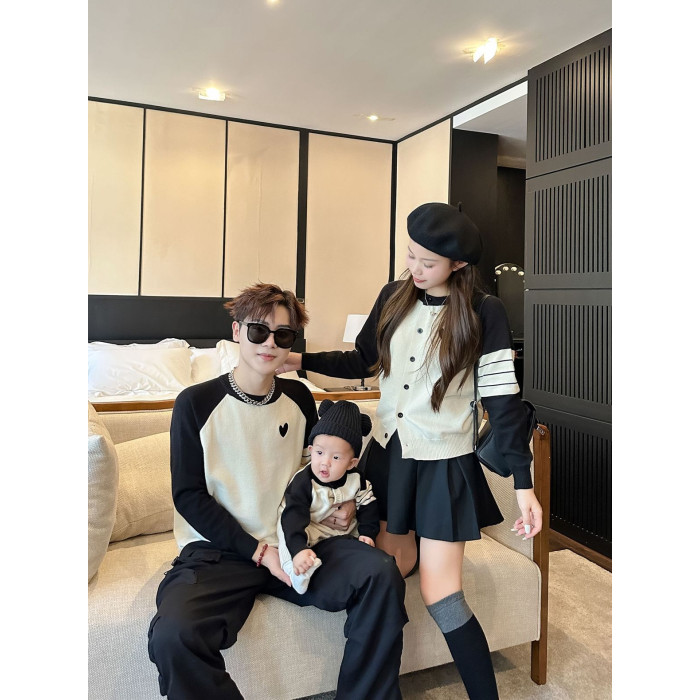 愛心親子裝秋冬裝一家三口刺綉母女毛衣開衫針織衫外套嬰兒全家裝