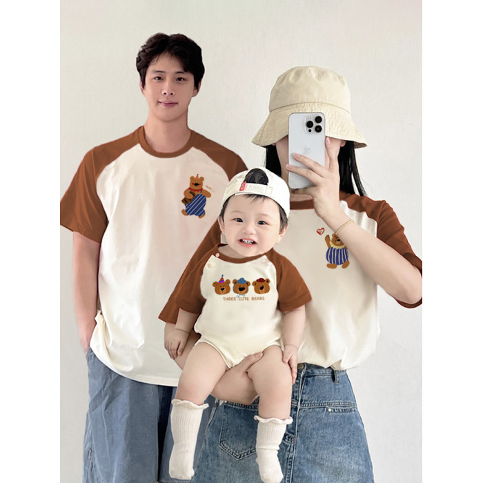 嬰兒親子t恤一家三四口夏款寶寶包屁衣小月齡百天周嵗拍照全家福