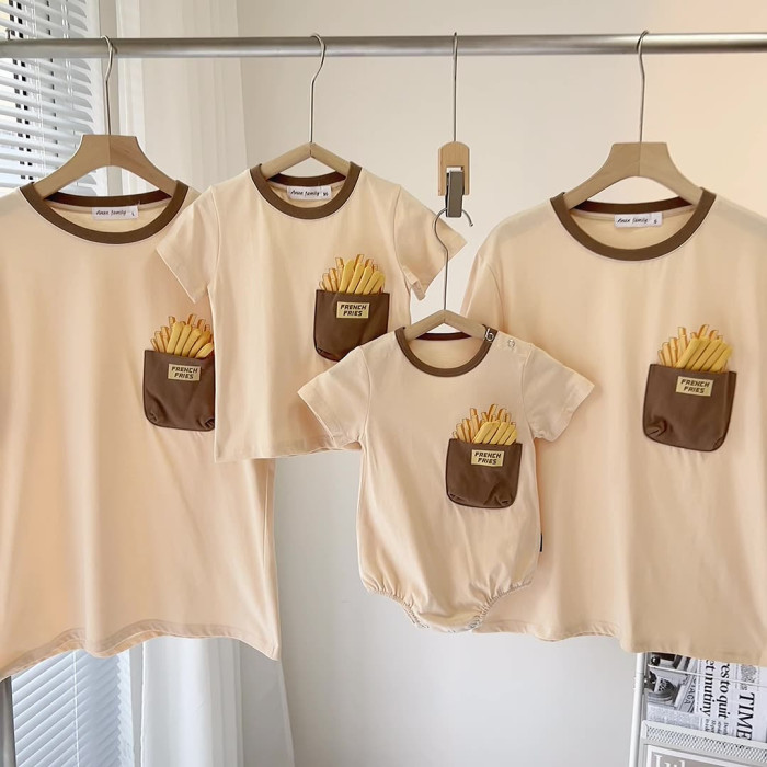 薯條親子裝嬰兒一家三口四口2025新款親子夏母女母子網紅短袖t恤