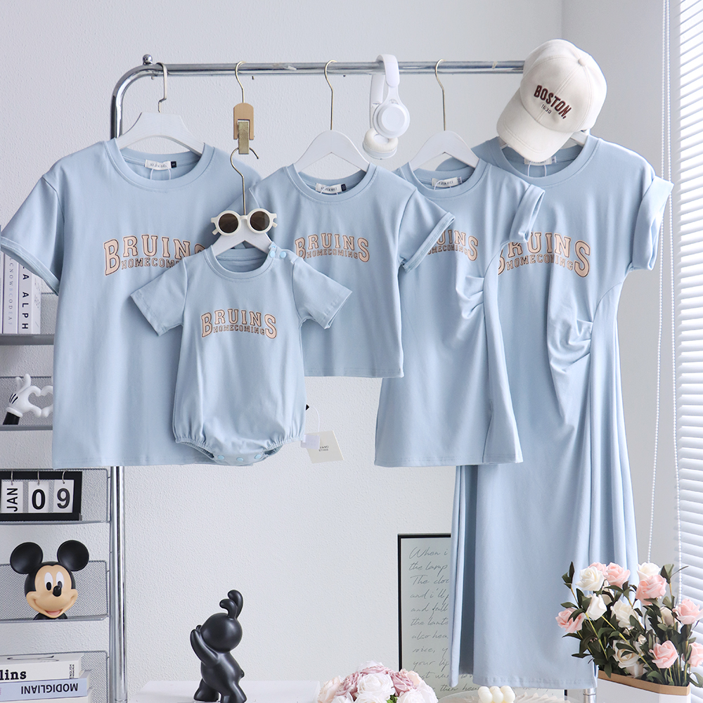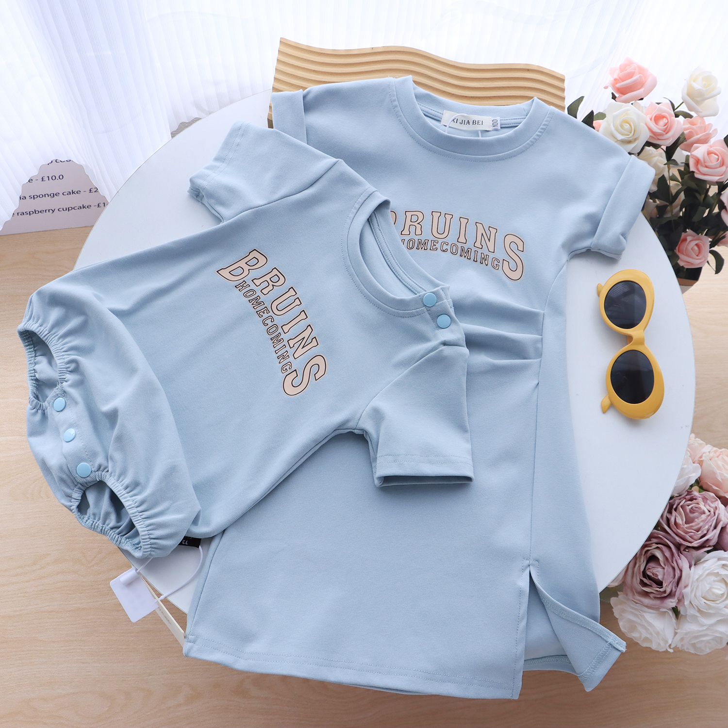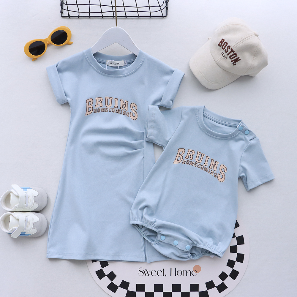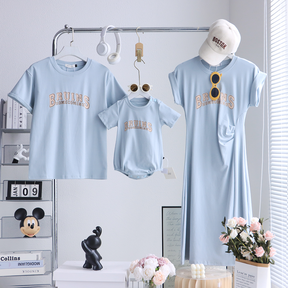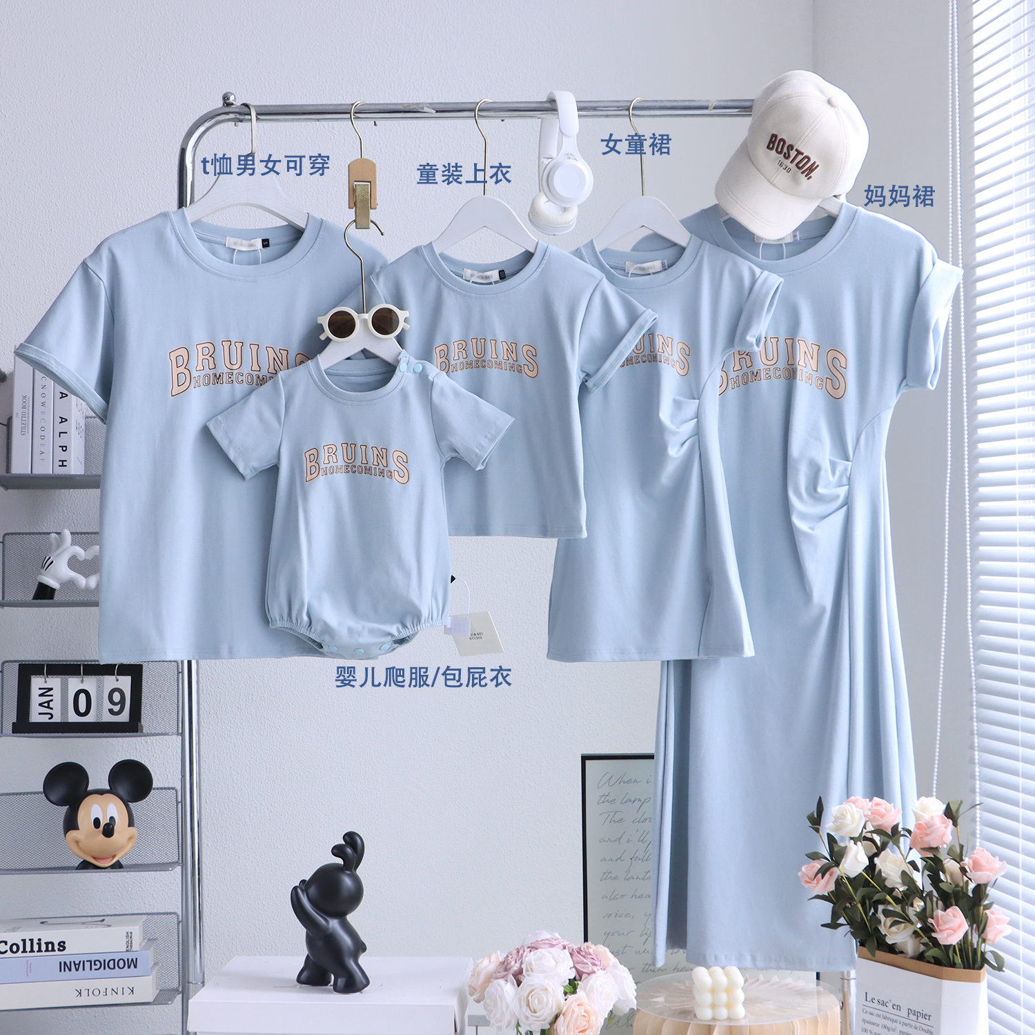 海邊度假連衣裙親子裝母女款高級感夏季一家三口四口母子炸街裙子