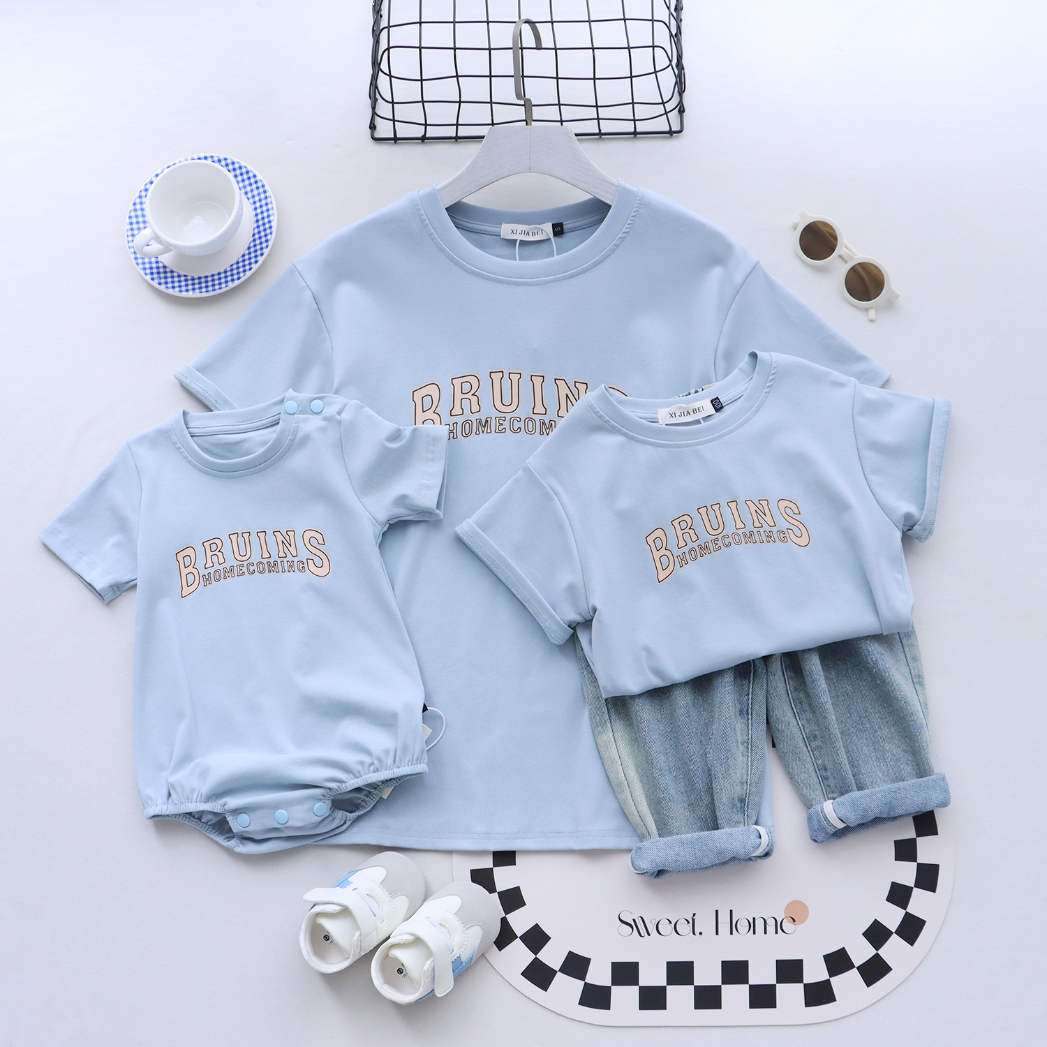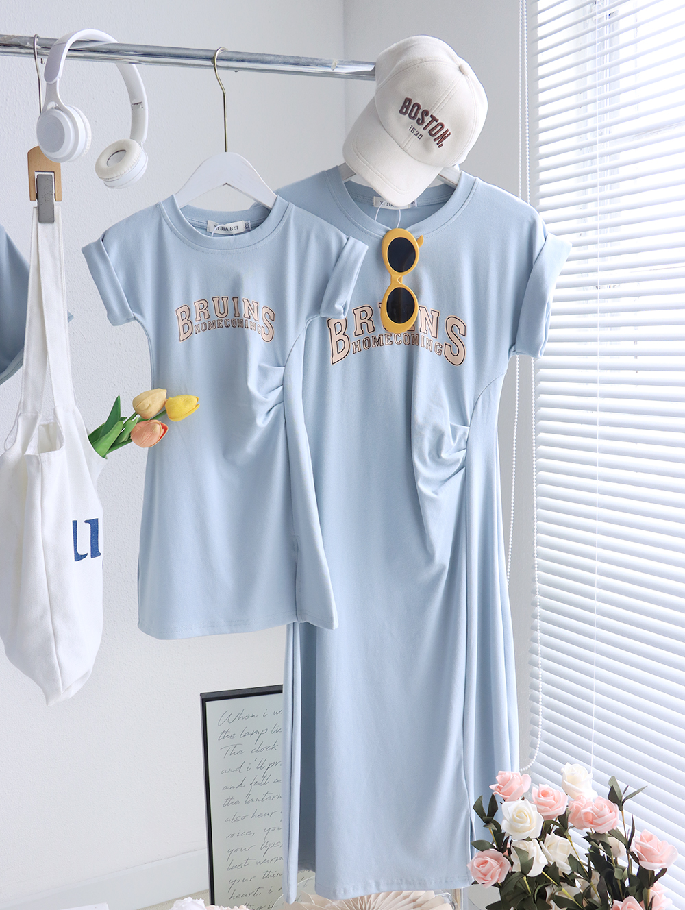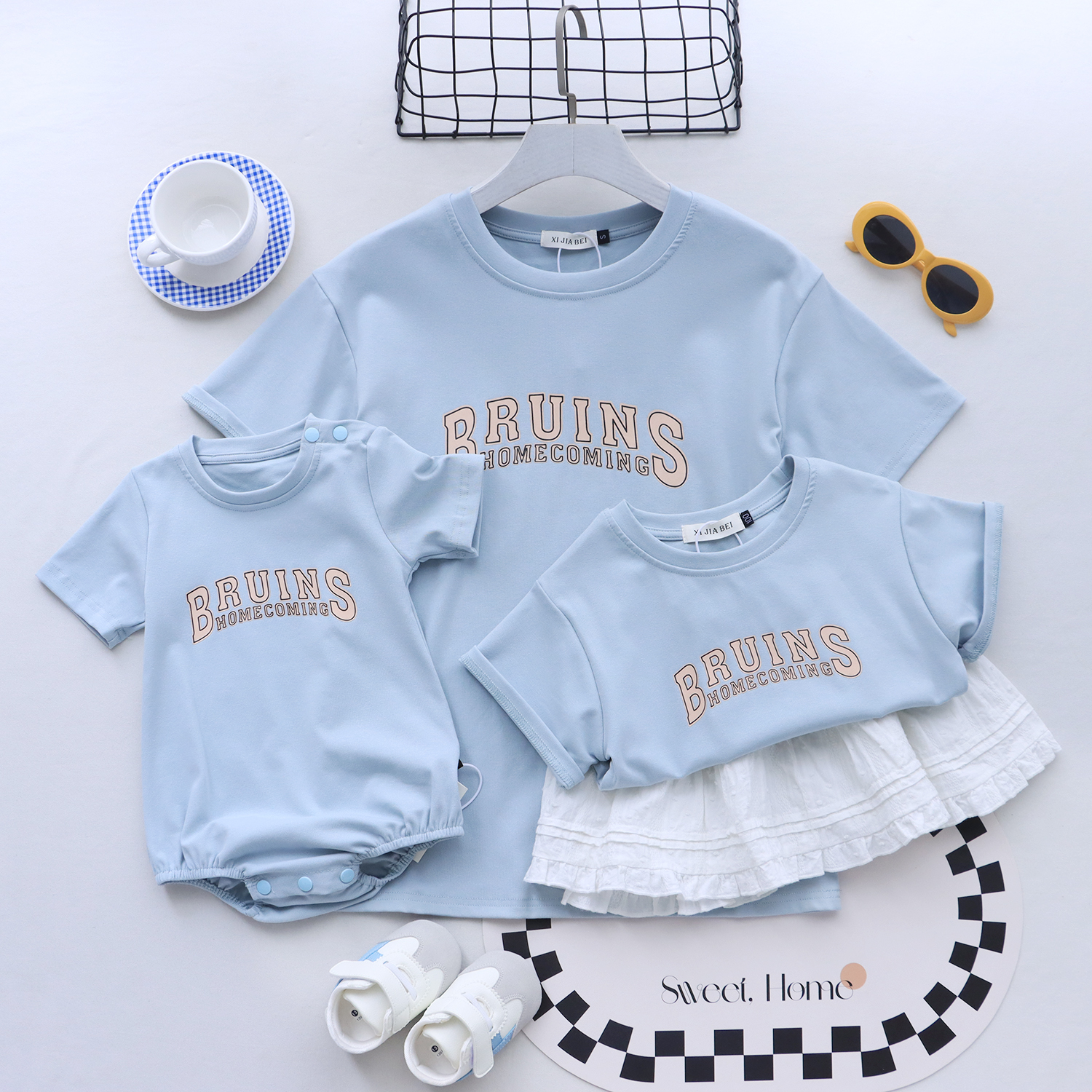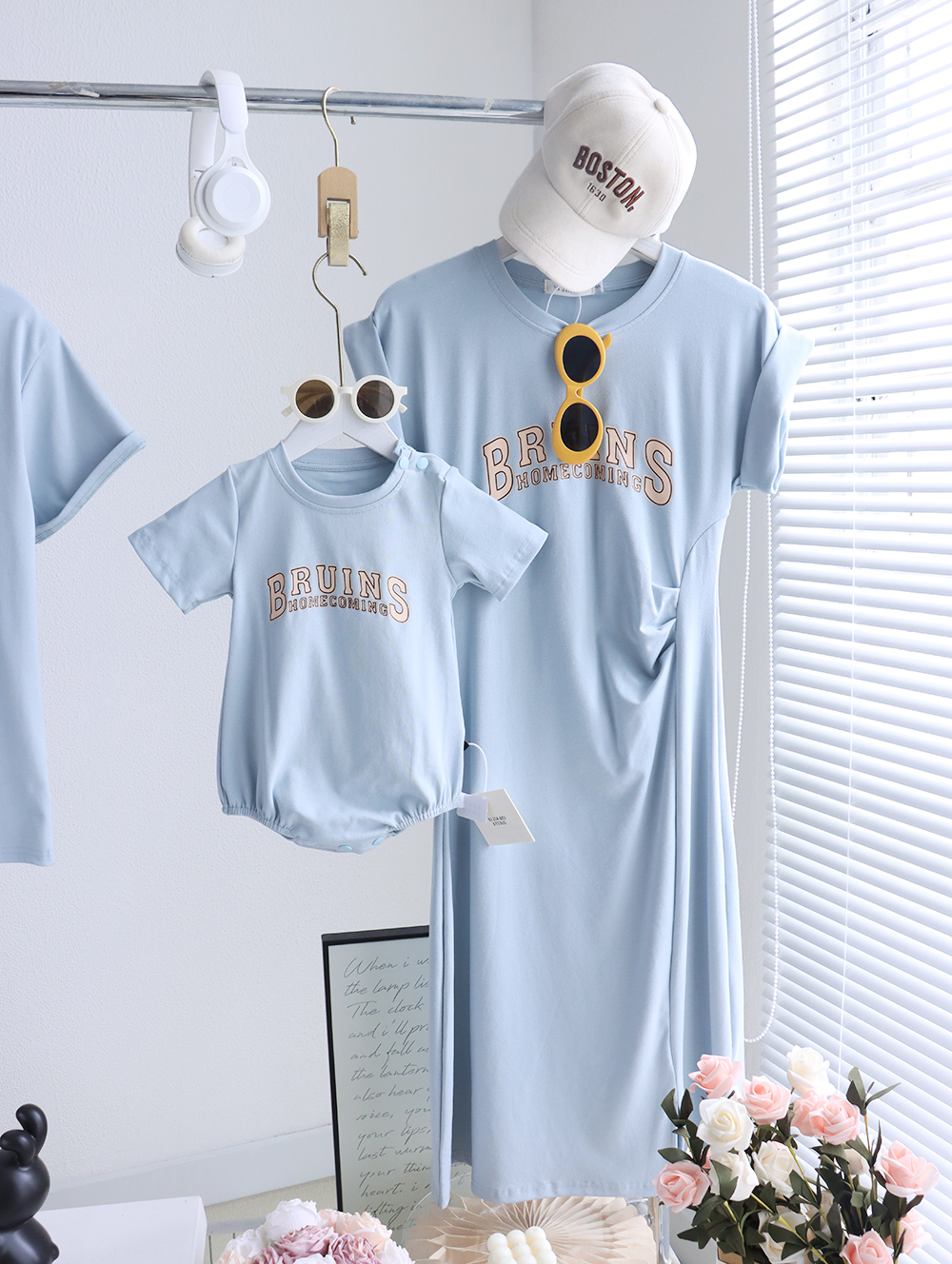海邊度假連衣裙親子裝母女款高級感夏季一家三口四口母子炸街裙子