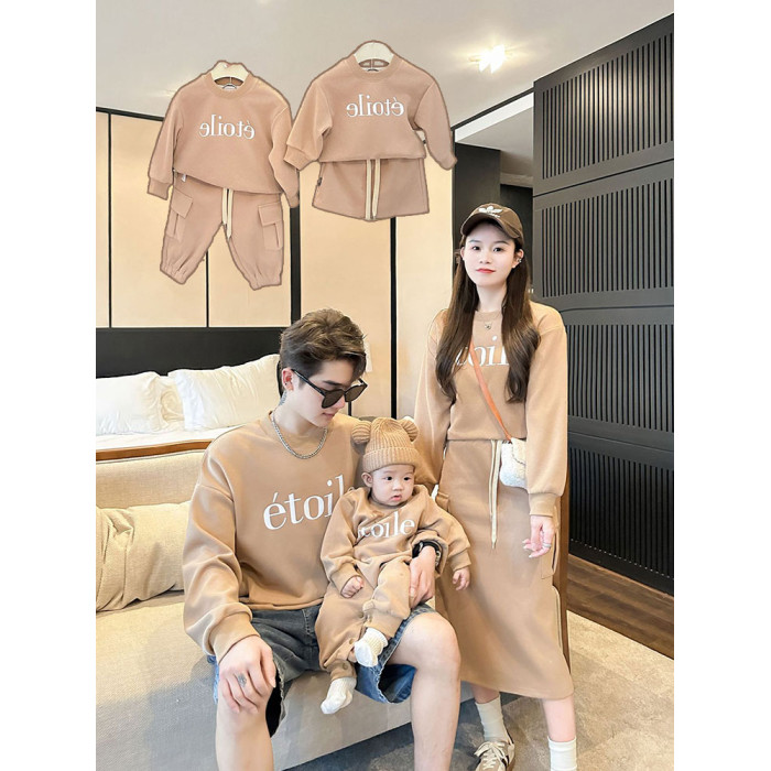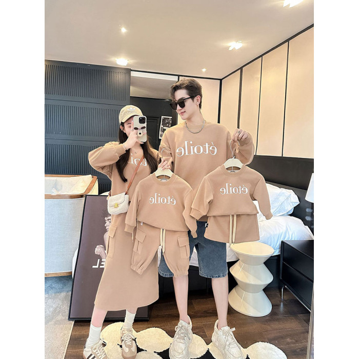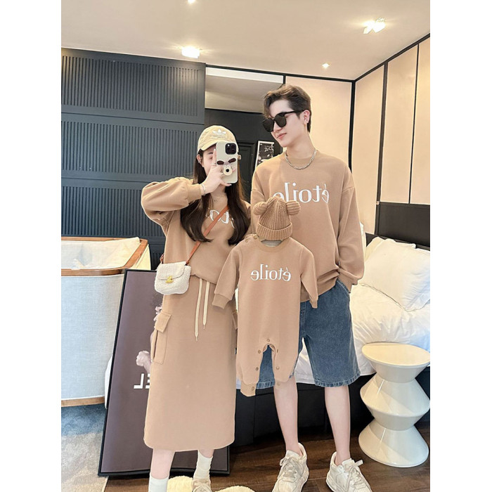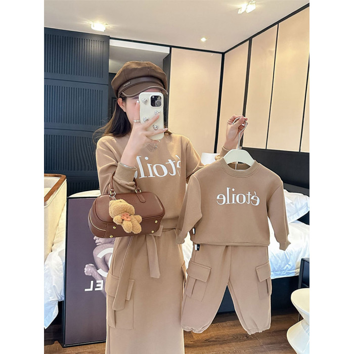 2024新款炸街親子裝母女半身裙一家三口嬰兒連體母子春秋衛衣套裝