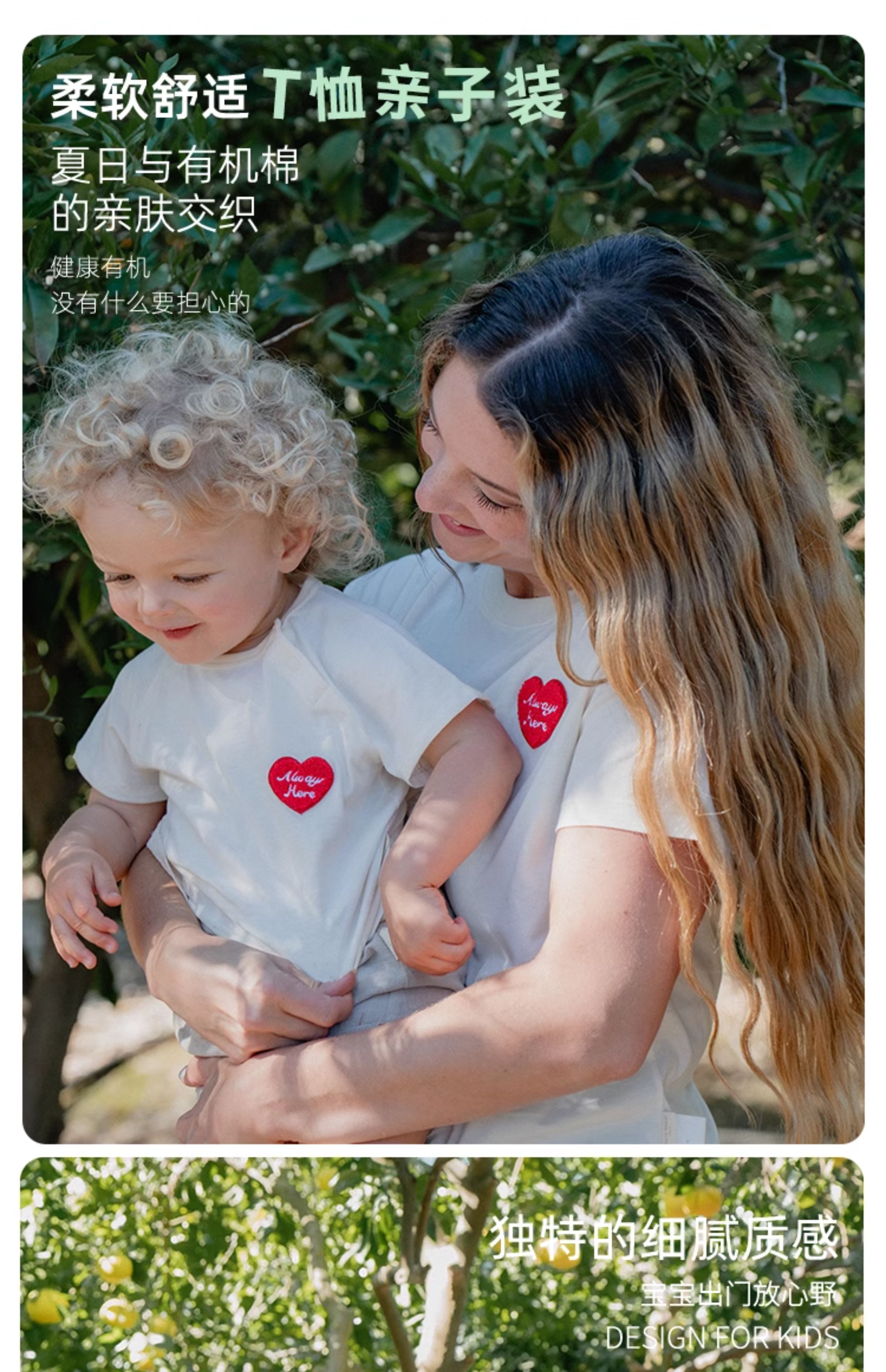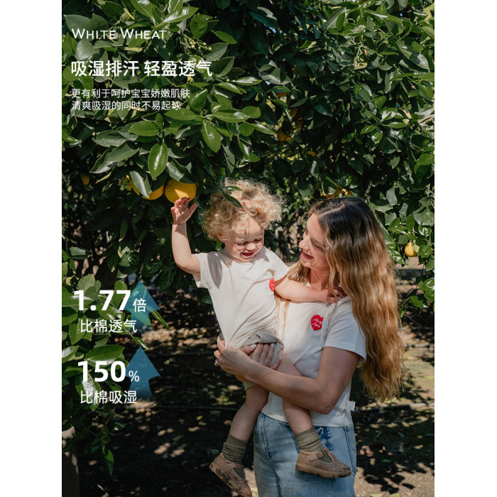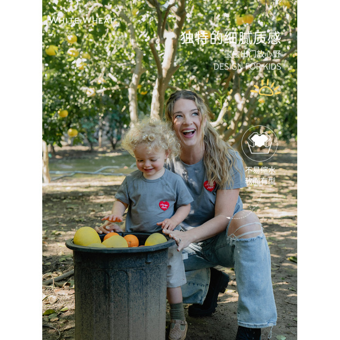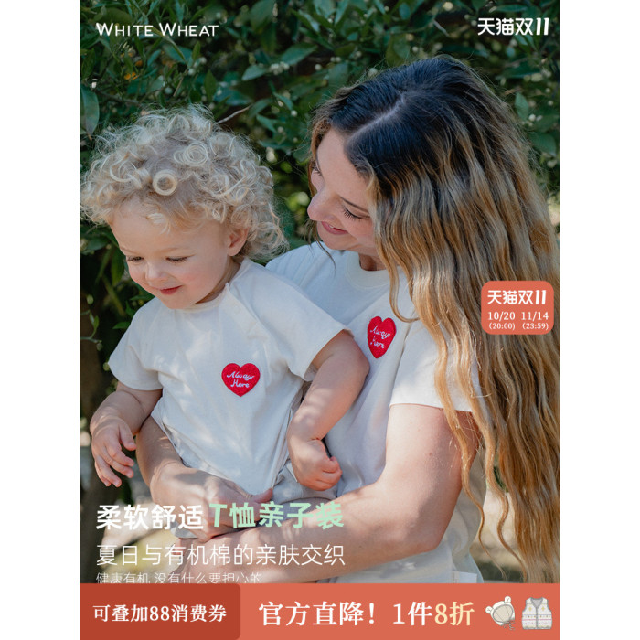 whitewheat兒童2025夏季新款純棉母子印花短袖t恤寶寶親子裝母女